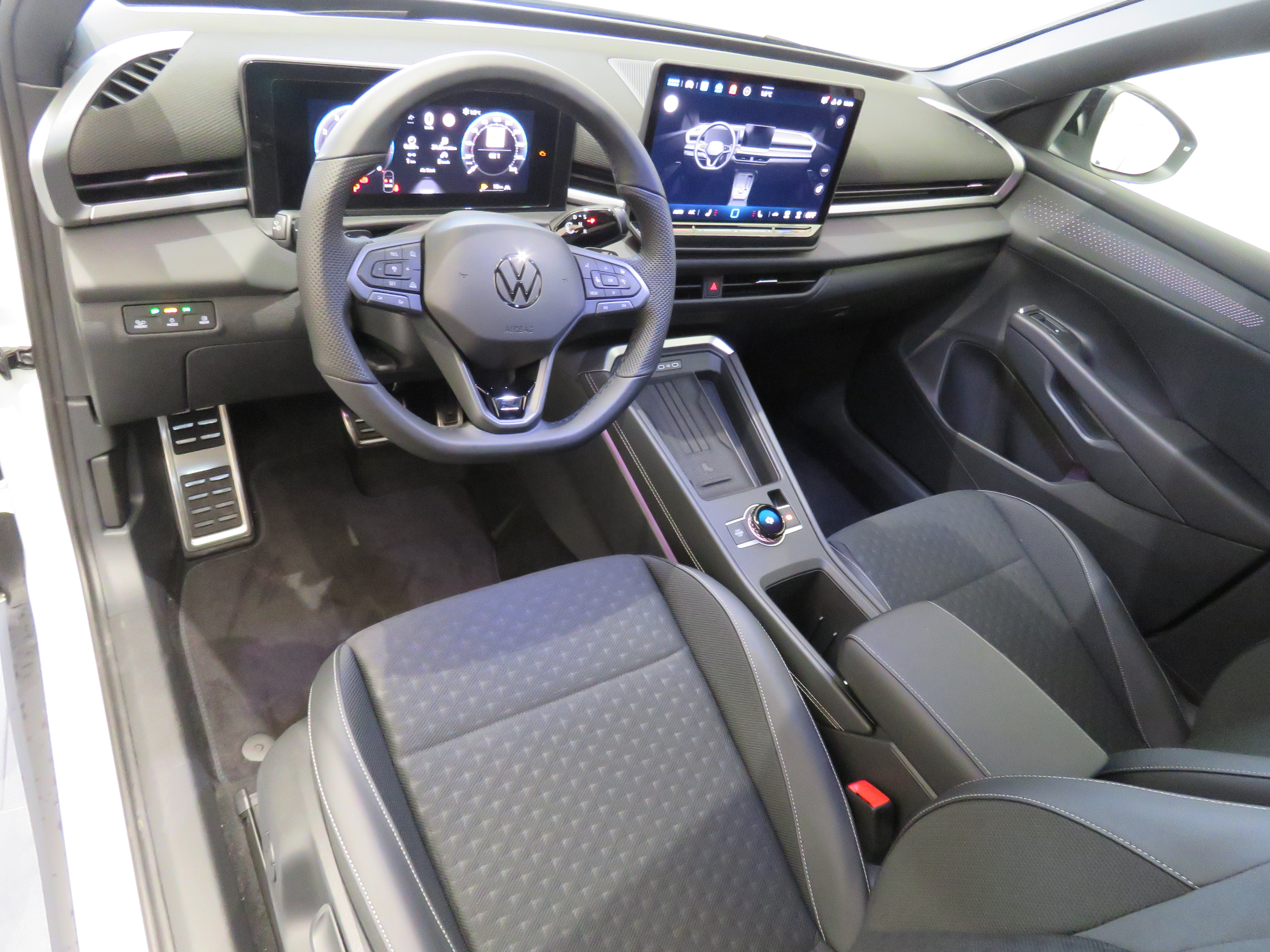 Ausstattung überspringen "Easy Open & Close" 12-V-Steckdose im Gepäckraum 6 Lautsprecher Abbiege- und Schlechtwetterlicht Abbiegebremsfunktion und Ablagefach und 12-V-Steckdose vorn Ablenkungs- und Müdigkeitserkennung Airbag für Fahrer und Beifahrer Ambientebeleuchtung 30-farbig App-Connect inkl. Wireless-Funktion Außenspiegel elektrisch Außenspiegelgehäuse und Türgriffe in Automatische Distanzregelung ACC Beifahrersitzlehne nicht umklappbar Berganfahrassistent Bordwerkzeug und Wagenheber Chrom-Applikationen an Dachhimmel schwarz Dachreling silber eloxiert Dekor-Set Design-Paket "Black Style" Diebstahlwarnanlage Digital Cockpit Pro Digitaler Radioempfang DAB+ Diversity-Antenne für FM-Empfang Doppelton-Signalhorn Dreipunkt-Automatiksicherheitsgurte Dreipunkt-Automatiksicherheitsgurte vorn Elektronische Parkbremse Elektronisches Stabilisierungsprogramm Fahrerlebnisschalter Fahrlichtschaltung automatisch mit Fahrprofilauswahl Fernlichtregelierung "Light Assist" Frontscheibe in Verbundsicherheitsglas Gepäckraumboden variabel Geschwindigkeitsbegrenzer mit Infotainment-Paket "Discover" Infotainment-System 12,9 Zoll Innenspiegel automatisch abblendend ISOFIX-Halteösen Klimaanlage 3-Zonen "Air Care Kopfairbags vorn und hinten Kopfstützen vorn im Sitz integriert Kreuzungsassistent LED-Plus-Scheinwerfer LED-Rückleuchten Lendenwirbelstützen vorn Leuchte im Fußraum vorn Leuchtweitenregulierung dynamisch Lichtpaket "IQ.Light" Make-up-Spiegel beleuchtet Mittelarmlehne vorn Multifunktions-Sportlenkrad in Leder Nebelschlusslicht einseitig Notbremsassistent "Front Assist" mit Notruf-Service Parkassistent "Park Assist Plus" inkl. Parkpaket Pedale in Edelstahl gebürstet Progressivlenkung Räder 18" Coventry Regensensor Reifenkontrollanzeige Rückfahrkamera "Rear View" Rücksitzbank ungeteilt Schlüssellooses Schließ- und Startsystem Seitenscheiben hinten und Servolenkung elektromechanisch Sicherheitsoptimierte Kopfstützen vorn Sitzmittelbahnen der Vordersitze und Sport-Komfortsitze vorn Sportfahrwerk Spurhalteassistent "Lane Assist" Spurwechselassistent "Side Assist" mit Start-Stopp-System Steinschlagschutz Splitt Stoßfänger im "R-Line"-Styling Technikpaket "IQ.Drive" Telefonschnittstelle "Comfort" mit Textilfußmatten vorn und hinten Tire Mobility Set Tür und Seitenverkleidung Schaumfolie Türgriffmulden beleuchtet Umfeldbeleuchtung mit Logoprojektion USB-C-Schnittstellen vorn (2 Stk) mit Verbandtasche, Warndreieck und Warnweste Verkehrszeichenerkennung Volkswagen Logo vorn und hinten Vorbereitet für Navi Vorbereitet für VW Connect und Vorbereitung Alcohol interlock Vordersitze beheizbar Vordersitze mit Höheneinstellung VW Garantie 5 Jahre / 100.000 km Warnton und Warnleuchte Wegfahrsperre elektronisch Zierleisten in Pyritsilber matt Mehr anzeigen