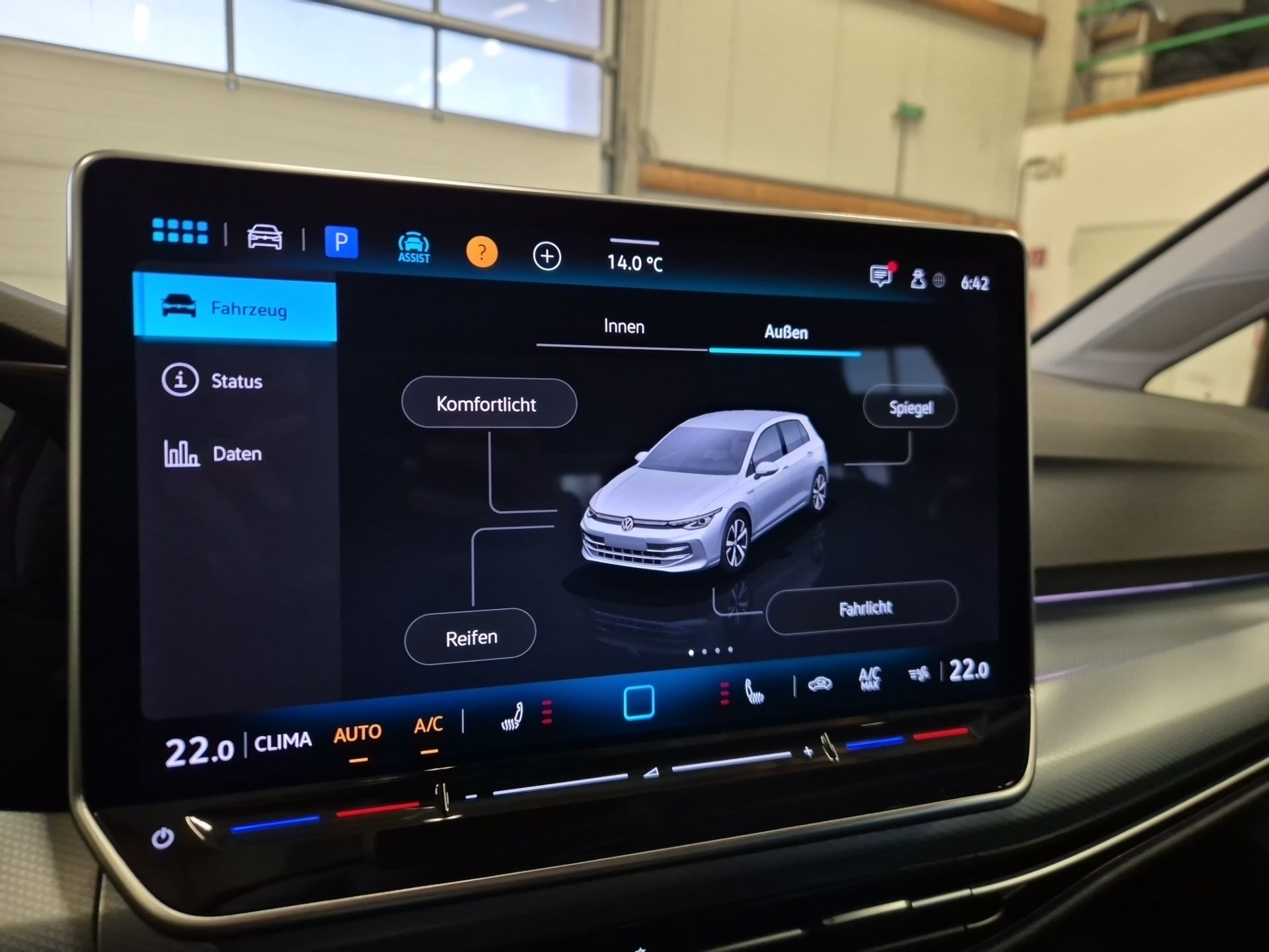 Ausstattung überspringen 12-V-Steckdose im Gepäckraum 2 LED-Leseleuchten vorn und 2 hinten 2 USB-C-Schnittstellen vorn, 2 USB-C-Ladebuchsen an der Mittelkonsolehinten; Ladeleistung bis zu 45 W 4 Leichtmetallräder "Zürich" 7 J x 16 6+1 Lautsprecher Abbiegebremsfunktion und Ausweichunterstützung Ablage- und Staukasten Mittelarmlehne Ablenkungs- und Müdigkeitserkennung Abstandsregelung Airbag für Fahrer und Beifahrer, mit Beifahrerairbag-Deaktivierung Ambientebeleuchtung 30-farbig App Connect App-Connect Wireless für Apple CarPlay und Android Auto Apple CarPlay Außen-Sound Standard Außenspiegel beheizbar Außenspiegel elektrisch anklappbar Außenspiegel elektrisch einstell-, anklapp-, beheizbar, mit Memory-Funktionund Beifahrerspiegelabsenkung Außenspiegelgehäuse in Schwarz Automatische Distanzregelung ACC Bluetooth Bordcomputer Chrom-Applikationen an Spiegeleinstell- und Fensterheberschaltern, Chromleisten an den Auströmern Digital Cockpit Pro, mehrfarbig, verschiedene Info-Profile wählbar Digitaler Radioempfang DAB+ Diversity-Antenne für FM-Empfang Dreipunkt-Automatiksicherheitsgurte für die äußeren Rücksitzplätze Dreipunkt-Automatiksicherheitsgurte vornmit Höheneinstellung und Gurtstraffer Einparkhilfe - Warnsignale bei Hindernissen im Front- und Heckbereich Elektronische Parkbremse inkl. Auto-Hold-Funktion Elektronische Sprachverstärkung Elektronisches Stabilisierungsprogramm und elektromechanischer Bremskraftverstärker Fahrassistent "Travel Assist" und Spurhalteassistent "Lane Assist" Fahrerairbag Fahrlichtschaltung automatisch, mit LED-Tagfahrlicht sowie Begrüßungs- und Verabschiedungslicht Fahrzeuge mit besonderen Produktaufwer- tungsmaßnahmen Fensterheber elektrisch hinten Fensterheber elektrisch vorne Fernlichtassistent "Light Assist" Frontscheibe in Verbundsicherheitsglas, wärme- und geräuschdämmend Geschwindigkeitsbegrenzer mit vorausschauender Regelung Induktive Ladeschale für Smartphones Infotainment-Paket "Ready 2 Discover" Infotainment-System mit 32,7-cm-Display (12,9 Zoll) Innenspiegel automatisch abblendend ISOFIX-Halteösen für Kindersitze auf denäußeren Rücksitzen sowie auf dem Beifahrersitz, i-Size-kompatibel Klimaanlage "Air Care Climatronic" mit Aktiv-Kombifilter, Bedienelementen hinten und 3-Zonen-Temperaturregelung Kombi-Instrument mit elektronischem Tachometer, Kilometer- und Tageskilometerzähler, Drehzahlmesser Kopfairbags vorn und hinten, Seitenairbags vorn, Center-Airbag LED-Leuchte im Fußraum vorn, Lichtfarbe wählbar LED-Rückleuchten LED-Scheinwerfer LED-Scheinwerfer mit Tagfahrlicht LED-Tagfahrlicht Leichtmetallfelgen 16 Zoll Lendenwirbelstützen vorn Lenkrad-Leder & Lederschaltknopf Leuchtweitenregulierung dynamisch Make-up-Spiegel beleuchtet in den Sonnenblenden Mittelarmlehne vorn höhen- und längseinstellbar Mittelarmlehne vorne Müdigkeitserkennung Multifunktionsanzeige Multifunktionskamera Multifunktionslenkrad Multifunktionslenkrad in Leder, beheizbar Nebelschlusslicht einseitig, Rückfahrlicht beidseitig Notbremsassistent Notbremsassistent "Front Assist" mit Fußgänger- und Radfahrererkennung Notruf-Service, Laufzeit 10 Jahre ab Erstauslieferung, Voraussetzung: Verfügbarkeit benötigter Mobilfunknetze Notrufsystem / E-Call Online-Dienst, mit OCU, mit Head Unit Codierung, ohne WFS-Verbund Pedale in Edelstahl gebürstet Proaktives Insassenschutzsystem Radio Radsicherungen mit erweitertem Diebstahlschutz Regensensor Reifenkontrollanzeige Rücksitzbank ungeteilt, Lehne asymmetrisch geteilt umklappbar, mit Mittelarmlehne Schalthebelknauf in Leder Scheiben getönt Schlüsselloses Startsystem "Keyless Start" ohne Safe-Sicherung Seitenfenster ab B-Säule abgedunkelt Seitenscheiben hinten und Heckscheibe abgedunkelt Serviceheft gepflegt Servolenkung elektromechanisch, geschwindigkeitsabhängig geregelt Sitzbezug Stoff/Leder Sitzheizung vorne Spurwechselassistent "Side Assist", Ausparkassistent und Ausstiegswarnung Start-Stopp-System Startknopf Stoßfänger in Wagenfarbe, Lufteinlass mit Chromleiste Telefonschnittstelle mit induktiver Ladefunktion Tempomat Textilfußmatten vorn und hinten Tire Mobility Set: 12-Volt-Kompressor und Reifendichtmittel Touchscreen Türgriffmulden beleuchtet Umfeldbeleuchtung mit Lichtprojektion USB Schnittstelle Verbandtasche, Warndreieck und Warnweste Verkehrszeichenerkennung Virtual Cockpit Vorbereitet für "VW Connect" und "VW Connect Plus" Vorbereitet für spätere Freischaltung: Navigationssystem Vordersitze beheizbar Vordersitze mit Höheneinstellung Warnton und -leuchte für nicht angelegteGurte vorn und hinten Wartungsintervallverlängerung Wegfahrsperre elektronisch Mehr anzeigen