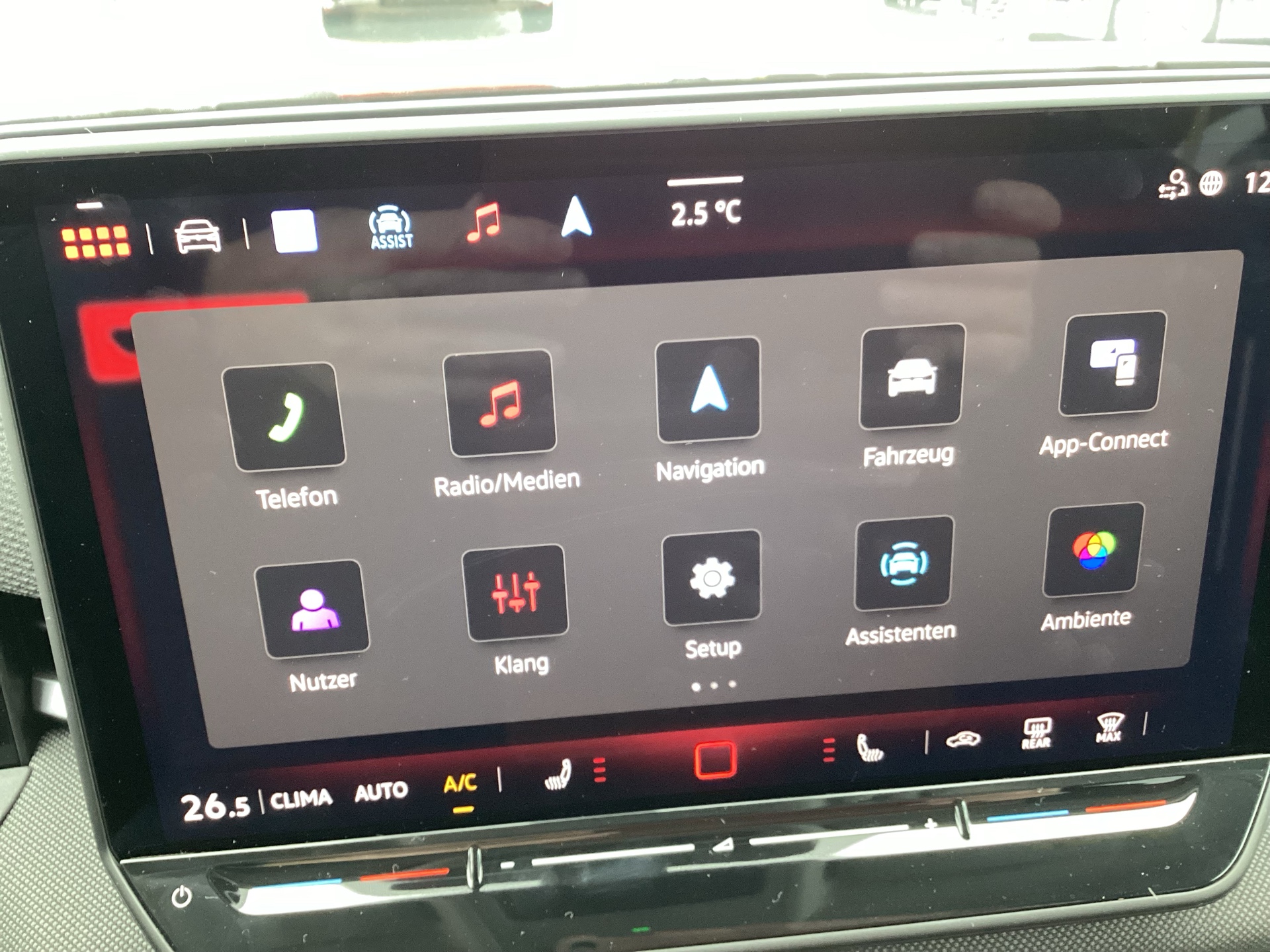 Ausstattung überspringen 12-V-Steckdose im Gepäckraum 3-Punktautomatikgurte vorne 6 Lautsprecher Abbiegebremsfunktion und Ablenkungs- und Müdigkeitserkennung Airbag für Fahrer und Beifahrer Ambientepaket App Connect App-Connect inkl. Wireless-Funktion Außenspiegel elektrisch Außenspiegel elektrisch verstellbar Außenspiegelgehäuse in Dachfarbe Automatische Distanzregelung Automatische Distanzregelung ACC Beifahrerairbag Beifahrersitzlehne komplett umklappbar Berganfahrassistent Bordwerkzeug und Wagenheber Chrom-Applikationen an Dachhimmel in Ceramique Dachreling Dachreling schwarz Dekor-Set Digital Cockpit Digitaler Radioempfang DAB+ Digitales Display Diversity-Antenne für FM-Empfang Doppelton-Signalhorn Dreipunkt-Automatiksicherheitsgurte Dreipunkt-Automatiksicherheitsgurte vorn Einparkhilfe vorn und hinten Elektronische Parkbremse Elektronisches Stabilisierungsprogramm Fahrerairbag Fahrlichtschaltung automatisch mit Fernlichtregelierung "Light Assist" Frontscheibe in Verbundsicherheitsglas Gepäckraumboden variabel Geschwindigkeitsbegrenzer mit Infotainment-System 12,9 Zoll Innenspiegel automatisch abblendend ISOFIX-Halteösen Klimaanlage "Climatronic" mit Komfortsitze vorn Kopfairbags vorn und hinten Kreuzungsassistent LED-Hauptscheinwerfer LED-Rückleuchten LED-Rückleuchten LED-Scheinwerfer Lendenwirbelstützen vorn Leuchtweitenregulierung Make-up-Spiegel beleuchtet Mittelarmlehne vorn Multifunktionslenkrad in Leder Nebelschlusslicht einseitig Notbremsassistent "Front Assist" mit Notruf-Service Räder 16" Bilbao Radio Regensensor Reifenkontrollanzeige Rückfahrkamera "Rear View" Rücksitzbank ungeteilt Schlüsselloses Startsystem Seitenscheiben hinten und Servolenkung elektromechanisch Sicherheitsoptimierte Kopfstützen vorn Sitzmittelbahnen der Vordersitze und Spurhalteassistent Spurhalteassistent "Lane Assist" Spurwechselassistent Spurwechselassistent "Side Assist" mit Start-Stopp-System Steinschlagschutz Splitt Stoßfänger in Wagenfarbe Telefonschnittstelle "Comfort" mit Textilfußmatten vorn und hinten Tire Mobility Set Türgriffmulden beleuchtet Umfeldbeleuchtung mit Logoprojektion USB Schnittstelle USB-C-Schnittstellen vorn (2 Stk) mit Verbandtasche, Warndreieck und Warnweste Verkehrszeichenerkennung Vorbereitet für Navi Vorbereitet für VW Connect und Vorbereitung Alcohol interlock Vordersitze mit Höheneinstellung VW Garantie 5 Jahre / 100.000 km Wärmeschutzverglasung grün Warnton und Warnleuchte Wegfahrsperre Wegfahrsperre elektronisch Winterpaket Zierleisten in Pyritsilber matt Mehr anzeigen