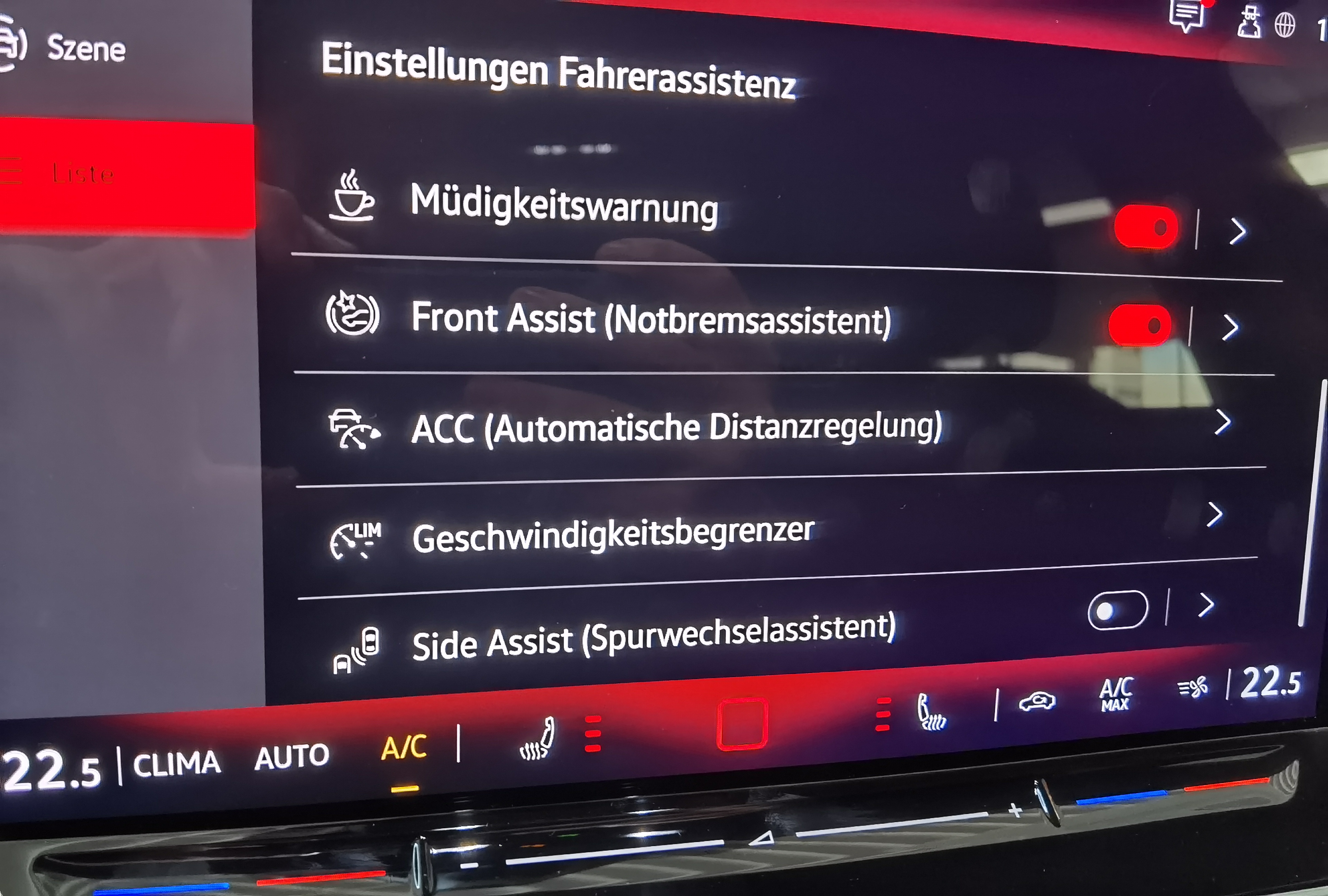 Ausstattung überspringen 6+1 Lautsprecher Abbiegebremsfunktion und Ablagefach und Steckdose 12V vorn Airbag für Fahrer und Beifahrer Ambientebeleuchtung 10-farbig Ambientebeleuchtung 30-farbig Anhängevorrichtung Anhängevorrichtung anklappbar App-Connect Wireless Außenspiegel elektrisch einstell- und Außenspiegelgehäuse/Türgriffe in Wagenf. Automatische Distanzregelung ACC Bordwerkzeug und Wagenheber Chrom-Applikationen Dekoreinlagen "Nature Cross Brushed" Digital Cockpit Pro Digitaler Radioempfang DAB+ Diversity-Antenne für FM-Empfang Doppelton-Signalhorn Dreipunkt-Automatiksicherheitsgurt Dreipunkt-Automatiksicherheitsgurte Dreipunkt-Automatiksicherheitsgurte vorn Elektronische Differenzialsperre XDS Elektronische Parkbremse Elektronisches Stabilisierungsprogramm Fahrlichtschaltung automatisch Freischaltbare Sonderausstattung: Frontscheibe in Verbundsicherheitsglas Fußgängerschutzmaßnahmen Geschwindigkeitsbegrenzer mit Innenspiegel automatisch abblendend ISOFIX-Halteösen Klimaanlage 1-Zonen "Climatronic" Komfortsitze vorn Kreuzungsassistent LED-Leseleuchten vorn (2 Stück) LED-Rückleuchten LED-Scheinwerfer Lendenwirbelstütze vorn Leuchtweitenregulierung dynamisch Licht und Sicht Paket inkl. Light Assist Make-up-Spiegel beleuchtet Mittelarmlehne vorn Müdigkeits- und Ablenkungserkennung Multifunktionslenkrad in Leder Notbremsassistent "Front Assist" Notruf-Service Online Dienste Parken-und-Komfort-Paket Räder, 17" "Nottingham" Radio "Ready 2 Discover" 12,9" Display Radsicherungen Reifenkontrollanzeige Rückfahrkamera "Rear View" Rücksitzbank asym. geteilt umklappbar Schalthebelknauf in Leder Seitenairbags vorn mit Kopfairbag und Seitenscheiben hinten und Heckscheibe Servolenkung elektromechanisch Sicherheitsoptimierte Kopfstützen vorn Sitzheizung vorne Sitzmittelbahnen in Stoff "Life" Spurhalteassistent "Lane Assist" Spurwechselassistent "Side Assist" Spurwechselassistent "Side Assist" Start-Stopp-System Steckdose 12V im Gepäckraum Steinschlagschutz Splitt Stoßfänger in Wagenfarbe Telefonschnittstelle Textilfußmatten vorne und hinten Tire Mobility Set Türgriffmulden beleuchtet Umfeldbeleuchtung mit Logoprojektion Unlimited-Paket Unlimited-Paket "Preisvorteil" USB-C-Schnittstellen vorn (2 Stück) Verkehrszeichenerkennung Vorbereitet für "Alcolock Interlock" Vorbereitet für VW Connect und Vordersitze mit Höheneinstellung VW Garantie 5 Jahre / 100.000 km Wärmeschutzverglasung grün Warndreieck Warnton und Warnleuchte Wegfahrsperre elektronisch Winterpaket Mehr anzeigen