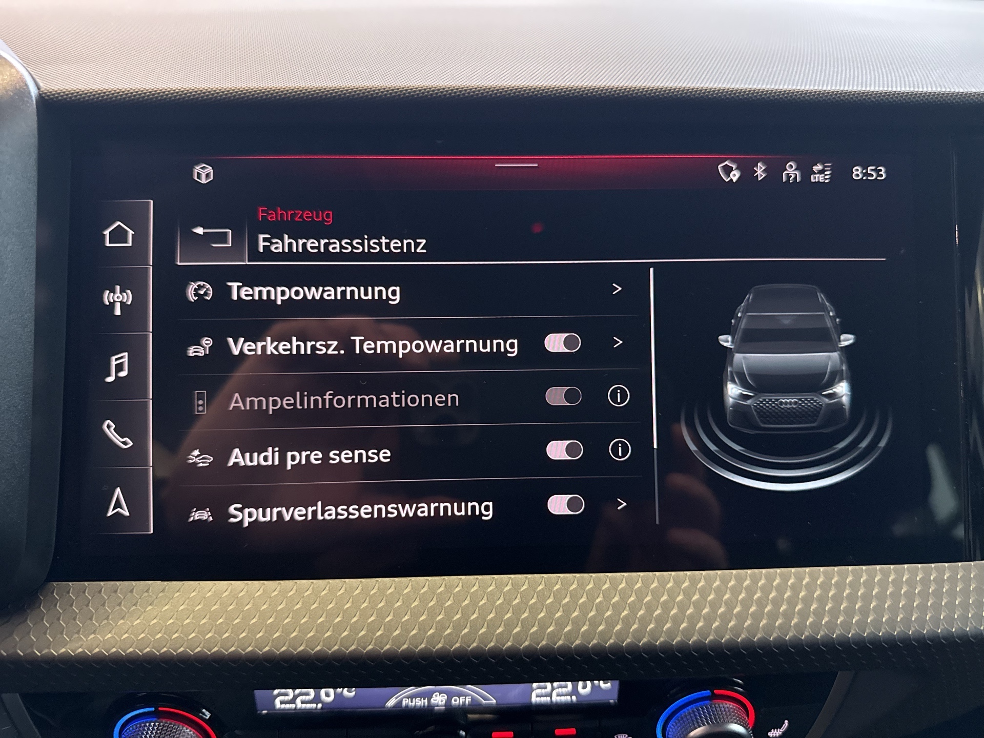 Ausstattung überspringen 6 Lautsprecher(passiv) Ablagefächer Ablagepaket Ablenkungs- und Müdigkeitserkennung Akzentfläche in der Armaturentafel Akzentflächen Diamantlack silbergrau Audi connect Navi. & Infotainment plus Audi connect Notruf Audi connect Remote & Control f. Radio Audi connect Remote & Control MMI Navi Audi Garantie 5 Jahre 100.000 KM Audi music interface Audi phone box Audi pre sense front Audi sound system Auspuffendrohre Außenspiegel elektr. einstell-/beheizbar Außenspiegelgehäuse in Wagenfarbe Ausstattungspaket A1 intense Beifahrersitz höhenverstellbar Beifahrersitz mit Höheneinstellung Berganfahrassistent Bordwerkzeug Dachhimmel in Stoff titangrau Dachkuppel in Wagenfarbe Deaktivierungsschalter Beifahrerairbag Dekoreinlagen schiefergrau Digitaler Radioempfang Digitales Kombiinstrument Einparkhilfe plus Einstellbarer Geschwindigkeitsbegrenzer Elektromechanische Servolenkung Embleme ESP (Elektron. Stabilisierungsprogramm) Fahrersitz höheneinstellbar Fensterheber Funkschlüssel (ohne Safelock) Fußgänger- u. Radfahrerschutzmaßnahmen Fußmatten vorne und hinten Geschwindigkeitsregelanlage Handbremshebelgriff in Kunststoff Heckspoiler Innenbeleuchtung Innenspiegel abblendbar Innenspiegel automatisch abblendbar Innenspiegel automatisch abblendend Kamerabasierte Verkehrszeichenerkennung Kindersitzbefestigung i-Size/ISOFIX Komfortklimaautomatik 2-Zonen Kopfstützen für Vordersitze Kopfstützen hinten 3 Stück LED-Scheinwerfer Lenkrad-Leder Leuchtweitenregulierung elektrisch Licht- und Regensensor Lichtpaket Media-Schnittstelle Mittelarmlehne vorne MMI Radio Plus Modellbezeichnung Multifunktionskamera Multifunktionslederlenkrad plus Multifunktionslenkrad Nebelschlußleuchte Nichtraucherausführung Normalsitze vorne Park Distanz Kontrolle vorne und hinten Privacy-Verglasung Räder "5-V-Speichen-Design" 7,5Jx17 Reifendruck-Kontrollanzeige Reifenreparaturset Rücksitzlehne umklappbar S tronic Schalt-/Wählhebelknauf Seitenairbags vorne und Kopfairbagsystem Seitenfenster ab B-Säule abgedunkelt Serienfahrwerk Sitzbelegungserkennung Sitzheizung vorne Soundsystem Sportback Sprachdialogsystem Spurverlassenswarnung Start/Stopp-System Staub- und Pollenfilter Stoff Debüt Stoßfänger Tagfahrlicht Technologiepaket USB-Schnittstelle Vorbereitung für MMI Navigation plus Wärmeschutzverglasung Warndreieck/Verbandsmaterial Waschwasser-Standanzeige Wegfahrsperre elektronisch Zierleiste Mehr anzeigen