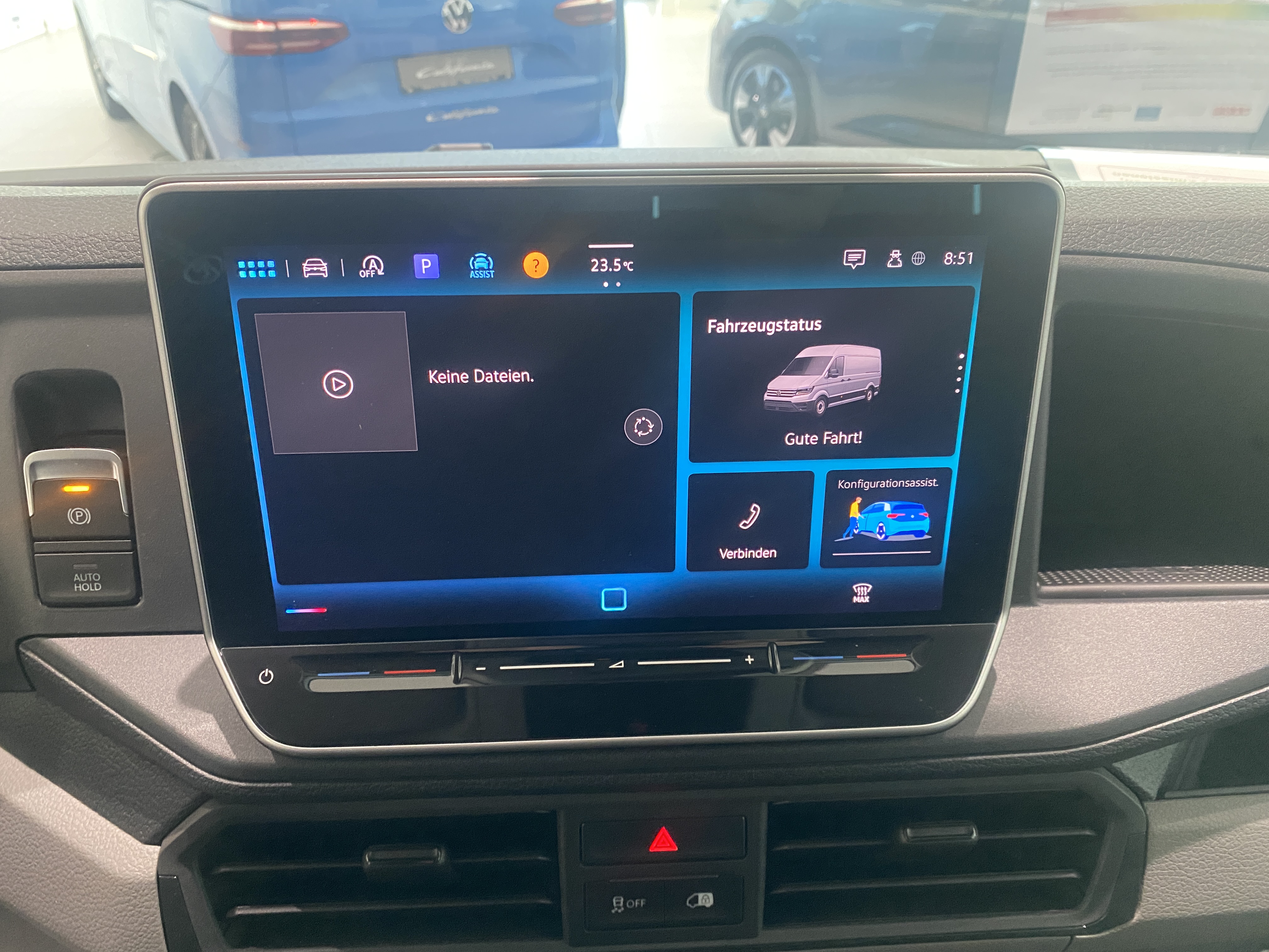 Ausstattung überspringen 2+3 Jahre Anschlussgarantie 200.000 km Abgaskonzept EA6EA / WLTP3 Abgasnorm EURO 6 Ablagenpaket Ablageschale am Dachhimmel Ablenkungs- und Müdigkeitserkennung Airbag für Fahrer und Beifahrer Anhängevorrichtung Anhängevorrichtung starr Antrieb, Frontantrieb App-Connect inkl. Wireless Außenspiegel elektrisch anklappbar Außenspiegel elektrisch anklappbar Außenspiegel links konvex Außenspiegel rechts konvex Becherhalter im FH (2 Stück) Berganfahrassistent Bodenbelag Fahrerhaus, Gummi Bodenbelag Laderaum, Holz Bordwerkzeug Digital Cockpit, mehrfarbig ESP elektron. Stabilisierungsprogramm Federung/Dämpfung verstärkt Fensterheber, elektrisch Front Assist Frontscheibe in Wärmeschutzglas Frühere Lieferung wünschenswert Haltegriff an der B-Säule Haltegriffe an Hecksäule, hi. li. u. re. Handschuhfach, abschließbar Hauptscheinwerfer Klarglas/Halogen Heizung im Fahrerhaus Hochdach außen in Wagenfarbe lackiert Innengeräuschdämpfung Plus Innengeräuschdämpfung Premium Innenspiegel automatisch abblendbar Innenspiegel, abblendbar Instrumenteneinsatz (km/h) Klemmleiste elektrisch A-Säule Klimaanlage Klimaanlage im Fahrerhaus Komfortsitz Laderaumbeleuchtung Laderaumbeleuchtung, 4 LED-Spots Laderaumverkleidung Boden Landessetzung Lautsprecher, 4 Stück im Fahrerhaus Lendenwirbelstütze Lenksäule höhen- und längsverstellbar Lenkung, elektromechanisch Licht- und Regensensor Markierungsleuchten, seitlich Mobiltelefon-Schnittstelle "Comfort" Multifunktionskamera Multifunktionslenkrad, Kunststoff Notrufsystem / E-Call Ohne Totwinkelwarnung Parkbremse, elektromechanisch ParkPilot vorne und hinten Preisschutz Radabdeckung Mitte Räder, Stahl 6 1/2 J x 16, silber Räder, Stahl 6 1/2 J x 16, silber Radio Radio "Ready 2 Discover" Radio Composition Rechtshinweis Mobile Online-Dienste VWN Reifen ohne Festlegung der Reifenmarke Reifen, 205/75 R16 C 113/111 Reifen, Sommerreifen Reifendruck-Kontrollsystem Reserverad in Fahrbereifung Reserverad in Fahrbereifung, Stahlfelge Rückfahrkamera Rückfahrkamera "Rear View" Schlüssel (2 Stück) Schlüssel (4 Stück) Schmutzfänger vorne und hinten Seitenverkleidung, Laderaum, hoch Seitenwindassistent Sitz Fahrer Komfortsitz "Plus" Sitz-Fahrer höhenverstellbar Sitz, Beifahrer Doppelsitzbank m. Ablage Sitzbezug Stoff "Austin" Spurhalteassistent "Lane Assist" Start-Stopp-System Steckdosen 12V Steckdosen im Fahrerhaus Steinschlagschutz Steuerungsnummer Steuerungsnummer 5EB Stoßfänger vorne grau Tagesfahrlicht mit Assistenzfahrlicht Tank, 75 Liter Tire Mobility Set Trennwand, hoch Trittstufe hinten über halbe Breite Tür, Schiebetür rechts Türen, Heckflügeltüren, ohne Fenster USB Schnittstelle USB-Schnittstellen (Typ C), 2 Stück Verbandsmaterial und Warndreieck Verkehrszeichenerkennung VerpflichtendeErstzulassung bis 31.12.25 verstärkte Federung Verzurrösen zur Ladegutsicherung Vorbereitung Alcohol Interlock Vorbereitung We Connect Plus Vorderachse (1.800 kg Traglast) Wärmeschutzverglasung im Fahrerhaus Wartungsintervall-Verlängerung Waschwasserstandanzeige Wegfahrsperre elektronisch Zentralverriegelung "Keyless-Go" Mehr anzeigen