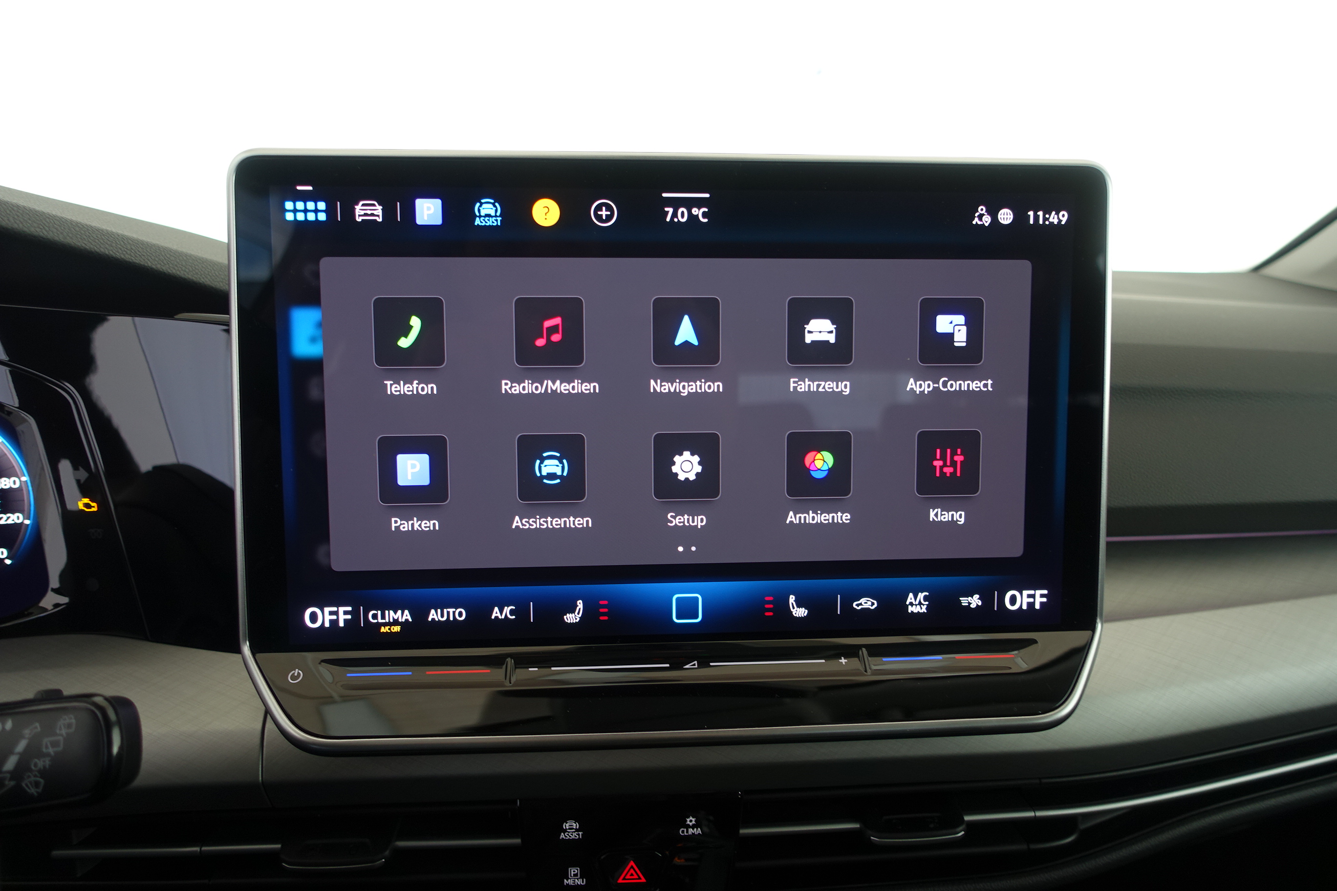 Ausstattung überspringen Abbiegebremsfunktion und Ablagefach und Steckdose 12V vorn Airbag für Fahrer und Beifahrer Ambientebeleuchtung 10-farbig Ambientebeleuchtung 30-farbig Anhängevorrichtung Anhängevorrichtung anklappbar App-Connect Wireless Außenspiegel elektrisch einstell- und Außenspiegelgehäuse/Türgriffe in Wagenf. Automatische Distanzregelung ACC Beifahrersitzlehne nicht umklappbar Bordwerkzeug und Wagenheber Chrom-Applikationen Dachreling in schwarz Dachreling silber eloxiert Dekoreinlagen "Nature Cross Brushed" Digital Cockpit Pro Digitaler Radioempfang DAB+ Doppelton-Signalhorn Dreipunkt-Automatiksicherheitsgurte Dreipunkt-Automatiksicherheitsgurte vorn Easy Open & Close Einparkhilfe Elektronische Differenzialsperre XDS Elektronische Parkbremse Elektronisches Stabilisierungsprogramm Fahrlichtschaltung automatisch Fernentriegelung für Rücksitzlehne Frontscheibe in Verbundsicherheitsglas Fußgängerschutzmaßnahmen Geschwindigkeitsbegrenzer mit Innenspiegel automatisch abblendend ISOFIX-Halteösen Klimaanlage "Climatronic" Komfortsitze vorn Kopfstützen (3 Stück) hinten LED-Leseleuchten vorn (2 Stück) LED-Plus-Scheinwerfer LED-Rückleuchten LED-Scheinwerfer Leichtmetallfelgen 18 Zoll Lendenwirbelstütze vorn Lenkrad beheizbar Leuchtweitenregulierung dynamisch Licht und Sicht Paket inkl. Light Assist Make-up-Spiegel beleuchtet Mittelarmlehne vorn Müdigkeits- und Ablenkungserkennung Multifunktionslenkrad in Leder Notbremsassistent "Front Assist" Notruf-Service Online Dienste Parken-und-Komfort-Paket Räder, 18" Catania Radio "Ready 2 Discover" 12,9" Display Radsicherungen Reifenkontrollanzeige Reserverad gewichts- und platzsparend Reserverad in Fahrbereifung Rückfahrkamera "Rear View" Rücksitzbank asym. geteilt umklappbar Seitenairbags vorn mit Kopfairbag und Seitenscheiben hinten und Servolenkung elektromechanisch Sicherheitsoptimierte Kopfstützen vorn Sitzheizung vorne Sitzmittelbahnen in Stoff "Life" Spurhalteassistent "Lane Assist" Start-Stopp-System Steckdose 12V im Gepäckraum Stoßfänger in Wagenfarbe Telefonschnittstelle Textilfußmatten vorne und hinten Tire Mobility Set Türgriffmulden beleuchtet Umfeldbeleuchtung mit Logoprojektion Unlimited-Paket Unlimited-Paket "Preisvorteil" USB-C-Schnittstellen vorn (2 Stück) Verkehrszeichenerkennung Vorbereitet für "Alcolock Interlock" Vorbereitet für VW Connect und Vordersitze mit Höheneinstellung VW Garantie 5 Jahre / 100.000 km Wärmeschutzverglasung grün Warndreieck Warnton und Warnleuchte Wegfahrsperre elektronisch Winterpaket Mehr anzeigen