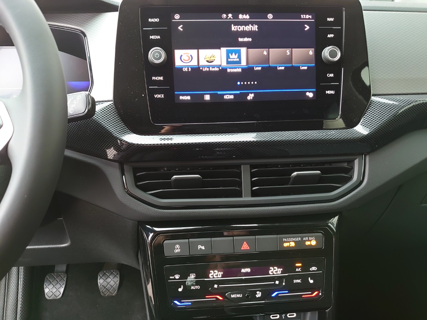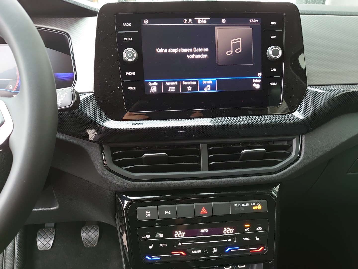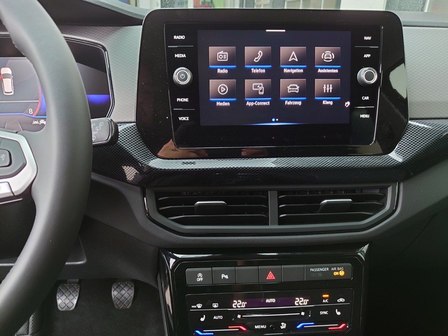 Ausstattung überspringen 2 USB-C-Schnittstellen vorn, 2 USB-C-Ladebuchsen an der Mittelkonsolehinten; Ladeleistung bis zu 45 W 3 Kopfstützen hinten 3 Zyl.Ottomotor 1,0L Aggr. 05C.B 3-Zylinder-Ottomotor 1,0 l TSI, 70 kW 4 Leichtmetallräder "Bangalore" 6,5 J x 17 4 Türen 5-Gang-Schaltgetriebe 6 Lautsprecher Abdeckungen für Leichtmetallräder Abgasendrohr hinten (Standard) Abgaskonzept, WLTP3 M1, N1-I//EU6EB Ablagetaschen an den Rückseiten der Vordersitze Ablenkungs- und Müdigkeitserkennung Airbag für Fahrer und Beifahrer, mit Beifahrerairbag-Deaktivierung Aktivkohlebehälter (EVAP) Anhängevorrichtung abnehmbar und abschließbar App-Connect Wireless für Apple CarPlay und Android Auto Außenspiegel elektrisch einstell-, anklapp- und beheizbar, mit Beifahrerspiegelabsenkung Außenspiegel Fahrerseite asphärisch, Beifahrerseite konvex Außenspiegelgehäuse und Türgriffe in Wagenfarbe Bangalore 6,5 x 17 Batterie 380A (59Ah) EFB+ Batterie/Generator Kapazität Standard Bauteilesatz ohne länderspezifische Bauvorschrift Beifahrersitzlehne komplett umklappbar Berganfahrassistent Betriebserlaubnis Nachtrag Bordliteratur in Deutsch (Österreich) Bordwerkzeug und Wagenheber Dachhimmel Dachreling schwarz Dämpfung hinten,Schlechtwegeausführung Dämpfung vorn Dekoreinlagen "Life" für Instrumententafel Digital Cockpit, mehrfarbig, verschiedene Info-Profile wählbar Digitaler Radioempfang DAB+ Diversity-Antenne für FM-Empfang Drehstromgenerator 140 A Dreipunkt-Automatiksicherheitsgurt für mittleren Rücksitzplatz Dreipunkt-Automatiksicherheitsgurte mit Gurtstraffer für die äußeren Rücksitzplätze Dreipunkt-Automatiksicherheitsgurte vornmit Höheneinstellung und Gurtstraffer Einparkhilfe - Warnsignale bei Hindernissen im Front- und Heckbereich Einton-Signalhorn Elektronisches Stabilisierungsprogramm mit Gegenlenkunterstützung, ABS, ASR, EDS, MSR und Gespannstabilisierung Entfall des Schriftzugs für die Motorbezeichnung auf der Gepäckraumklappe Fahrer- und Beifahrerairbag Fahrlichtschaltung automatisch, mit LED-Tagfahrlicht sowie "Coming home"- und "Leaving home"-Funktion Fahrzeuge mit besonderen Produktaufwer- tungsmaßnahmen Fahrzeugklassen-Differenzierung -2GC- Federbereich 25 nur Einbausteuerung keine Bedarfsprognose Fensterheber elektrisch Fernlichtassistent "Light Assist" Fertigungsablauf Pamplona Frischluftansaugung mit Aktivkohlefilter Frontantrieb Frontscheibe in Verbundsicherheitsglas, wärmedämmend Fußgänger- und Radfahrererkennung Fußhebelwerk "Standard" Gepäckraumabdeckung Gepäckraumbeleuchtung Gepäckraumboden in 2 Höhen einstellbar, für ebene Ladefläche Geschwindigkeitsbegrenzer Gewichtsbereich 18 nur Einbausteuerung keine Bedarfsprognose Handbremshebelgriff in Leder Handschuhfachklappe,mit Leuchte Heckscheibenwischer mit Intervallschaltung Hinterachse "Standard" Infotainment-Paket "Ready 2 Discover" Innenleuchten mit Abschaltverzögerung und Dimmfunktion, 2 Leseleuchten vorn und 2 hinten Innenspiegel automatisch abblendend Instrumententafel geschäumt ISOFIX-Halteösen für Kindersitze auf denäußeren Rücksitzen sowie auf dem Beifahrersitz, i-Size-kompatibel Kältemittel R1234yf Kein Sonderfahrzeug,Standard-Ausführung Keine Aktionsausführung Klimaanlage "Air Care Climatronic" mit Aktiv-Kombifilter und 2-Zonen-Temperaturregelung Kombi-Instrument mit elektronischem Tachometer, Kilometer- und Tageskilometerzähler, Drehzahlmesser Kopfairbags Kopfairbagsystem für Front- und Fondpassagiere inkl. Seitenairbags vorn Kraftstoffsystem Otto-Einspritzer (Tropicalisiert) Kurzheck Landesverkaufsprogramm Österreich LED-Rückleuchten LED-Scheinwerfer LED-Scheinwerfer mit Tagfahrlicht Lendenwirbelstützen vorn Lenksäule mit Höhen- und Längseinstellung Leuchtweitenregulierung Licht-und-Sicht-Paket inkl. "Light Assist" Life Linkslenker Make-up-Spiegel in den Sonnenblenden Mit UNECE CS (R155) ohne SU (R156) Mittelarmlehne vorn längseinstellbar, mit Ablagebox, 2 USB-Ladebuchsen hinten Modul Boden hinten Ausführung 1 Multifunktionskamera Multifunktionslenkrad Multifunktionslenkrad in Leder Nebelschlusslicht einseitig, Rückfahrlicht beidseitig Nicht Heissland Nichtraucherausführung - 12-V-Steckdose vorn Normalsitze vorn Notbremsassistent "Front Assist" Notruf-Service, Laufzeit 10 Jahre ab Erstauslieferung, Voraussetzung: Verfügbarkeit benötigter Mobilfunknetze Online-Dienst, mit OCU, mit Head Unit Codierung, ohne WFS-Verbund Österreich:Unlimited Paket Parkhilfe hinten Preissteuerung Modellpflege 2024 II Radio Radsicherungen mit erweitertem Diebstahlschutz Radstand Rechtsverkehr Regensensor Regionscode " ECE " für Radio Reifen 205/55 R 17, rollwiderstandsoptimiert Reifen ohne Festlegung der Reifenmarke Reifenkontrollanzeige Rückfahrkamera "Rear View" Rückleuchten in LED-Technik (außer Blinkleuchte und Rückfahrscheinwerfer) Rücksitzbank ungeteilt, verschiebbar, Lehne asymmetrisch geteilt umklappbar Schaltgetriebe MQ200 Schalthebelknauf in Leder Scheibenbremsen vorn Schlüsselloses Schließ- und Startsystem "Keyless Access" ohne SAFE-Verriegelung Schublade unter dem rechten Vordersitz Seitenscheiben hinten und Heckscheibe abgedunkelt Serienkraftstoff-Erstbefüllung Serviceanzeige 30000 km oder 2 Jahre ( flexibel ) Servolenkung Sicherheitsoptimierte Kopfstützen vorn Sitzmittelbahnen der Vordersitze und deräußeren Rücksitzplätze in Stoff "Life" Spezielles Typschild für EG für M1-Pkw Spurhalteassistent Spurhalteassistent "Lane Assist" Stabilisator vorn Standard-Klimazonen Start-Stopp-System mit Bremsenergie-Rückgewinnung Stoßfänger in Wagenfarbe Telefonschnittstelle mit induktiver Ladefunktion Tire Mobility Set: 12-Volt-Kompressor und Reifendichtmittel Trägerfrequenz 433,92 bis 434,42 MHz Trommelbremsen hinten Tür und Seitenverkleidung Typprüfland Österreich Überhang hinten, kurz Umfeldbeleuchtung mit Lichtprojektion USB Schnittstelle VE_EU Aktionsmodell 2024/2025 Life:4KF,KA1,4I3/4F2,PLC,PJ3,*002 R-Line:4KF,KA1,4I3/4F2,PXA,PLC,PJ6,*002 Verkehrszeichen