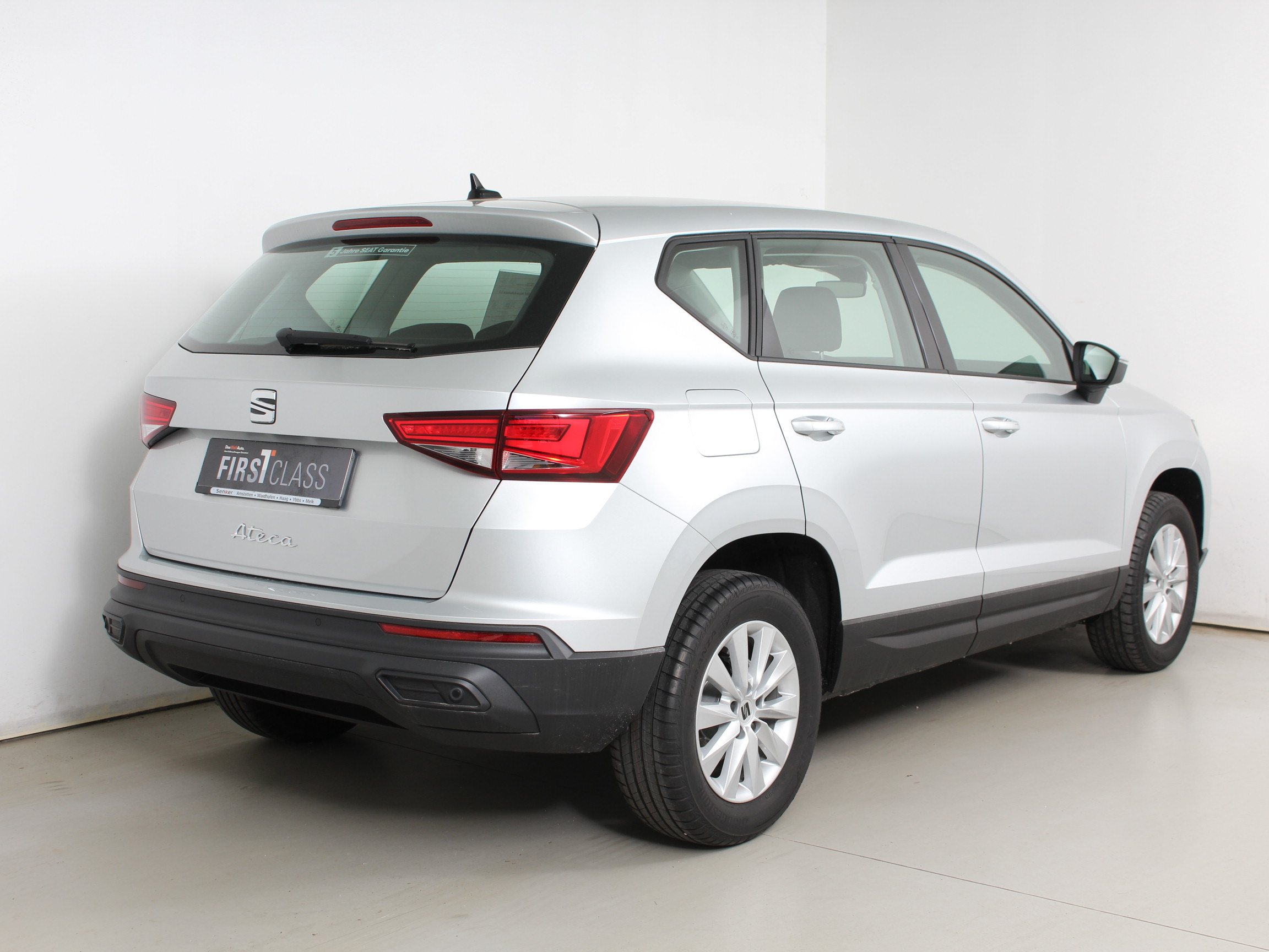 Fahrzeugdetails überspringen Ausstattung überspringen 12V-Anschluss in der Mittelkonsole 2x USB-C vorne 3-Punkt-Sicherheitsgurte 4 Lautsprecher 5 Jahre / 100.000 km Garantie 5 Jahre / 100.000 km Garantie ABS & ASR Airbag für Fahrer und Beifahrer Antenne für Radio App Connect Apple CarPlay Ateca Schriftzug handgeschrieben Auspuffendrohr nicht sichtbar Außenspiegel elektrisch verstellbar Außenspiegel und Türgriffe in Wagenfarbe B- und C-Säule schwarz matt Becherhalter in der Mittelkonsole Beifahrersitz höhenverstellbar Bremsbelagverschleißkontrolle Climatronic Coming Home & Leaving Home Funktion Dachhimmel grau Digitaler Radioempfang (DAB) Digitales Cockpit 8" Basic E-Call Notruf Einstiegsleisten aus Kunststoff Einton-Signalhorn Elektronische Handbremse mit Auto-Hold ESC (Elektronische Fahrersitz höhenverstellbar Felgen Alu 6J x 16 "Pedro" Fensterheber elektrisch vorne und hinten Fensterschachtleisten schwarz Freisprecheinrichtung Front Assist Frontantrieb Fußmatten Textil Garnitur Petex Gepäckraumabdeckung Geschwindigkeitsbegrenzer Gurt-Anschnallkontrolle auf allen Heckklappe manuell Heckscheiben Wisch-/Waschanlage Innenspiegel automatisch abblendend ISOFIX Kindersitzbefestigungen Jubiläumsprämie Klimaanlage manuell Kofferraum beleuchtet Komfortsitze Kopfstützen vorne und hinten Kopfthorax-Airbags vorne und hinten LED-Rückleuchten Leseleuchten vorne Leseleuchten vorne und hinten Leuchtweitenregulierung automatisch Media System 8,25" (20,96cm) Mittelarmlehne vorne Müdigkeits- und Ablenkungserkennung Multifunktionslenkrad in Leder OHNE Bluetooth-Freisprecheinrichtung OHNE Dachreling Optische Schaltempfehlung Österreich Paket Reference Parksensoren hinten Pedale Standard Preisschutz Radschrauben Standard Rechtshinweise mobile Online-Dienste Reference Ausstattung Regen- und Lichtsensor Reifen 215/60 R16 Reifendruckkontrolle Reserverad in Fahrbereifung Rücksitzlehne geteilt umlegbar(1/3:2/3) Scheibenbremsen hinten Scheibenbremsen vorne Scheibenwischer-Intervall-Schaltung SEAT CONNECT 3.0 Seitenairbags vorne Servolenkung elektro-mechanisch Sitzbezug Stoff Sitzheizung vorne Spurhalteassistent Start-Stopp-System Startknopf mit Heartbeat Stoßfänger Reference Tagfahrlicht Tempomat Tire-Mobility-Set Tür- u. Seitenverkleidung in Kunststoff Verkehrszeichenerkennung Verzurrösen im Laderaum (4 Stück) Voll-LED-Scheinwerfer Wärmeschutzverglasung Wärmeschutzverglasung Frontscheibe Wegfahrsperre elektronisch Winter-Paket XDS Mehr anzeigen