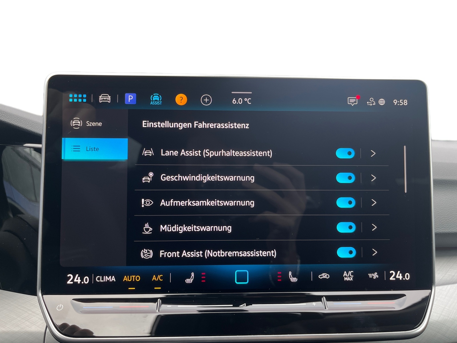 Ausstattung überspringen "Volkswagen TopCard" 360° Kamera Abbiegebremsfunktion und Ablagefach und Steckdose 12V vorn Airbag für Fahrer und Beifahrer Ambientebeleuchtung 10-farbig Anhängevorrichtung Anhängevorrichtung anklappbar App-Connect Wireless Außenspiegel elektrisch einstell- und Außenspiegelgehäuse/Türgriffe in Wagenf. Automatische Distanzregelung ACC Beifahrersitzlehne nicht umklappbar Bordwerkzeug und Wagenheber Chrom-Applikationen Dachreling in schwarz Dekoreinlagen "Nature Cross Brushed" Digital Cockpit Pro Digitaler Radioempfang DAB+ Doppelton-Signalhorn Dreipunkt-Automatiksicherheitsgurte Dreipunkt-Automatiksicherheitsgurte vorn Easy Open & Close Einparkhilfe Elektronische Differenzialsperre XDS Elektronische Parkbremse Elektronisches Stabilisierungsprogramm Fahrlichtschaltung automatisch Fernentriegelung für Rücksitzlehne Frontscheibe in Verbundsicherheitsglas Fußgängerschutzmaßnahmen Geschwindigkeitsbegrenzer mit Innenspiegel automatisch abblendend ISOFIX-Halteösen Klimaanlage "Climatronic" Komfortsitze vorn Kopfstützen (3 Stück) hinten Kreuzungsassistent LED-Leseleuchten vorn (2 Stück) LED-Plus-Scheinwerfer LED-Rückleuchten LED-Scheinwerfer Leichtmetallfelgen 17 Zoll Lendenwirbelstütze vorn Lenkrad beheizbar Leuchtweitenregulierung dynamisch Licht und Sicht Paket inkl. Light Assist Make-up-Spiegel beleuchtet Mittelarmlehne vorn Müdigkeits- und Ablenkungserkennung Multifunktionslenkrad in Leder Navigationssystem Navigationssystem "Discover" 12,9" Disp. Netztrennwand Notbremsassistent "Front Assist" Notruf-Service Online Dienste Parken-und-Komfort-Paket Räder, 17" Nottingham mit sportl.Fahr Radsicherungen Reifenkontrollanzeige Reserverad gewichts- und platzsparend Reserverad in Fahrbereifung Rückfahrkamera "Rear View" Rücksitzbank asym. geteilt umklappbar Schalthebelknauf in Leder Seitenairbags vorn mit Kopfairbag und Seitenscheiben hinten und Servolenkung elektromechanisch Sicherheitsoptimierte Kopfstützen vorn Sitzheizung vorne Sitzmittelbahnen in Stoff "Life" Spurhalteassistent "Lane Assist" Spurwechselassistent "Side Assist" Start-Stopp-System Steckdose 12V im Gepäckraum Steinschlagschutz Splitt Stoßfänger in Wagenfarbe Telefonschnittstelle Textilfußmatten vorne und hinten Tire Mobility Set Trenngitter/Wand Türgriffmulden beleuchtet Umfeldbeleuchtung mit Logoprojektion Umgebungsansicht "Area View" Unlimited-Paket Unlimited-Paket "Preisvorteil" USB-C-Schnittstellen vorn (2 Stück) Verkehrszeichenerkennung Vorbereitet für "Alcolock Interlock" Vorbereitet für VW Connect und Vordersitze mit Höheneinstellung VW Garantie 5 Jahre / 100.000 km Wärmeschutzverglasung grün Warndreieck Warnton und Warnleuchte Wegfahrsperre elektronisch Winterpaket Mehr anzeigen