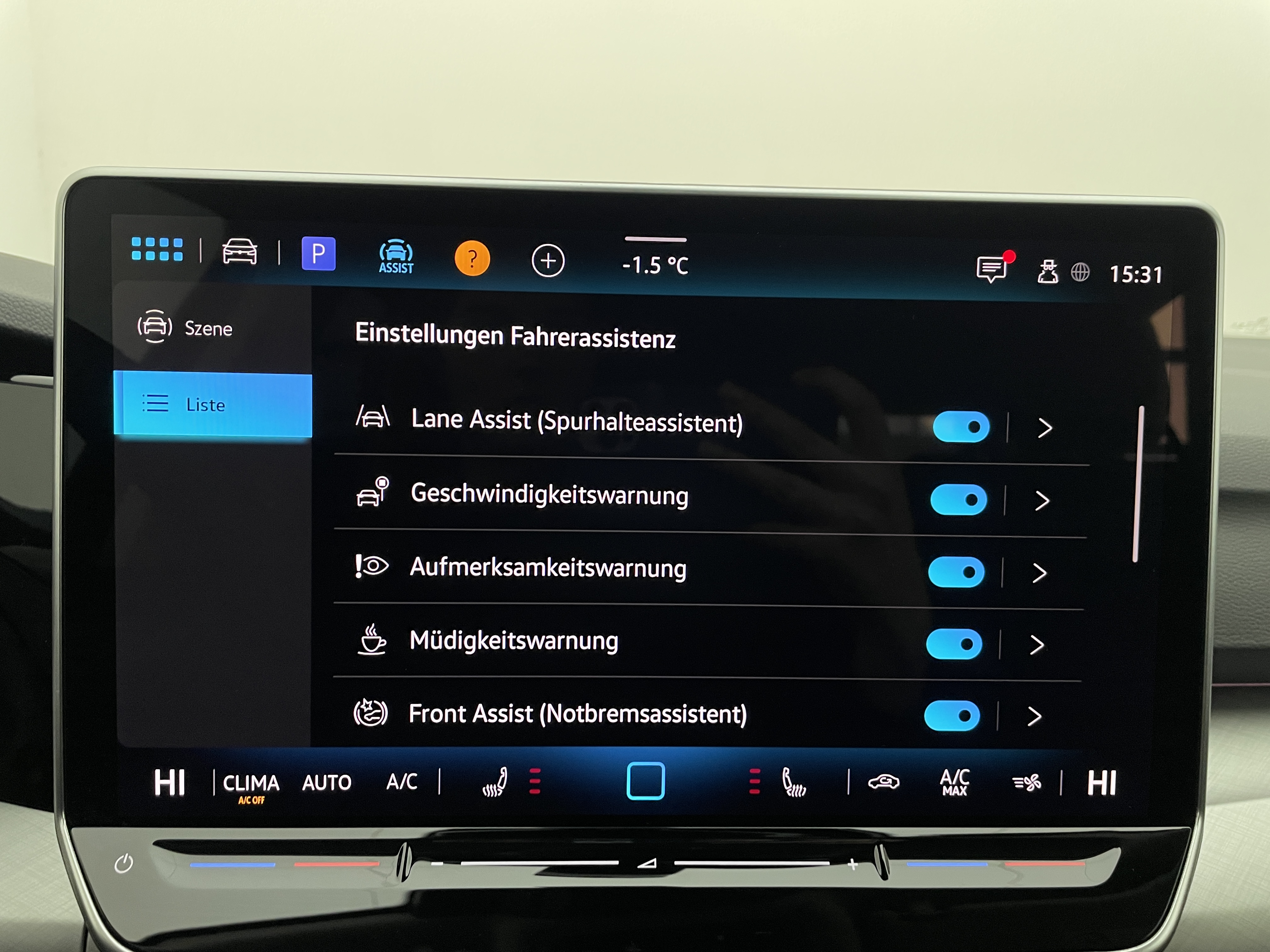 Ausstattung überspringen 6+1 Lautsprecher Abbiegebremsfunktion und Ablagefach und Steckdose 12V vorn Airbag für Fahrer und Beifahrer Ambientebeleuchtung 10-farbig Anhängevorrichtung Anhängevorrichtung anklappbar App-Connect Wireless Außenspiegel elektrisch einstell- und Außenspiegelgehäuse/Türgriffe in Wagenf. Automatische Distanzregelung ACC Bordwerkzeug und Wagenheber Chrom-Applikationen Dekoreinlagen "Nature Cross Brushed" Digital Cockpit Pro Digitaler Radioempfang DAB+ Diversity-Antenne für FM-Empfang Doppelton-Signalhorn Dreipunkt-Automatiksicherheitsgurt Dreipunkt-Automatiksicherheitsgurte Dreipunkt-Automatiksicherheitsgurte vorn Elektronische Differenzialsperre XDS Elektronische Parkbremse Elektronisches Stabilisierungsprogramm Fahrlichtschaltung automatisch Freischaltbare Sonderausstattung: Freischaltbare Sonderausstattung: Frontscheibe in Verbundsicherheitsglas Fußgängerschutzmaßnahmen Geschwindigkeitsbegrenzer mit Innenspiegel automatisch abblendend ISOFIX-Halteösen Klimaanlage "Climatronic" Komfortsitze vorn LED-Leseleuchten vorn (2 Stück) LED-Rückleuchten LED-Scheinwerfer Leichtmetallfelgen 18 Zoll Lendenwirbelstütze vorn Leuchtweitenregulierung dynamisch Licht und Sicht Paket inkl. Light Assist Make-up-Spiegel beleuchtet Mittelarmlehne vorn Müdigkeits- und Ablenkungserkennung Multifunktionslenkrad in Leder Notbremsassistent "Front Assist" Notruf-Service Online Dienste Parken-und-Komfort-Paket Räder, 18" Catania Radio "Ready 2 Discover" 12,9" Display Radsicherungen Reifenkontrollanzeige Reserverad gewichts- und platzsparend Rückfahrkamera "Rear View" Rücksitzbank asym. geteilt umklappbar Seitenairbags vorn mit Kopfairbag und Seitenscheiben hinten und Heckscheibe Servolenkung elektromechanisch Sicherheitsoptimierte Kopfstützen vorn Sitzheizung vorne Sitzmittelbahnen in Stoff "Life" Spurhalteassistent "Lane Assist" Start-Stopp-System Steckdose 12V im Gepäckraum Stoßfänger in Wagenfarbe Telefonschnittstelle Textilfußmatten vorne und hinten Tire Mobility Set Türgriffmulden beleuchtet Umfeldbeleuchtung mit Logoprojektion Unlimited-Paket Unlimited-Paket "Preisvorteil" USB-C-Schnittstellen vorn (2 Stück) Verkehrszeichenerkennung Vorbereitet für "Alcolock Interlock" Vorbereitet für VW Connect und Vordersitze mit Höheneinstellung VW Garantie 5 Jahre / 100.000 km Wärmeschutzverglasung grün Warndreieck Warnton und Warnleuchte Wegfahrsperre elektronisch Winterpaket Mehr anzeigen