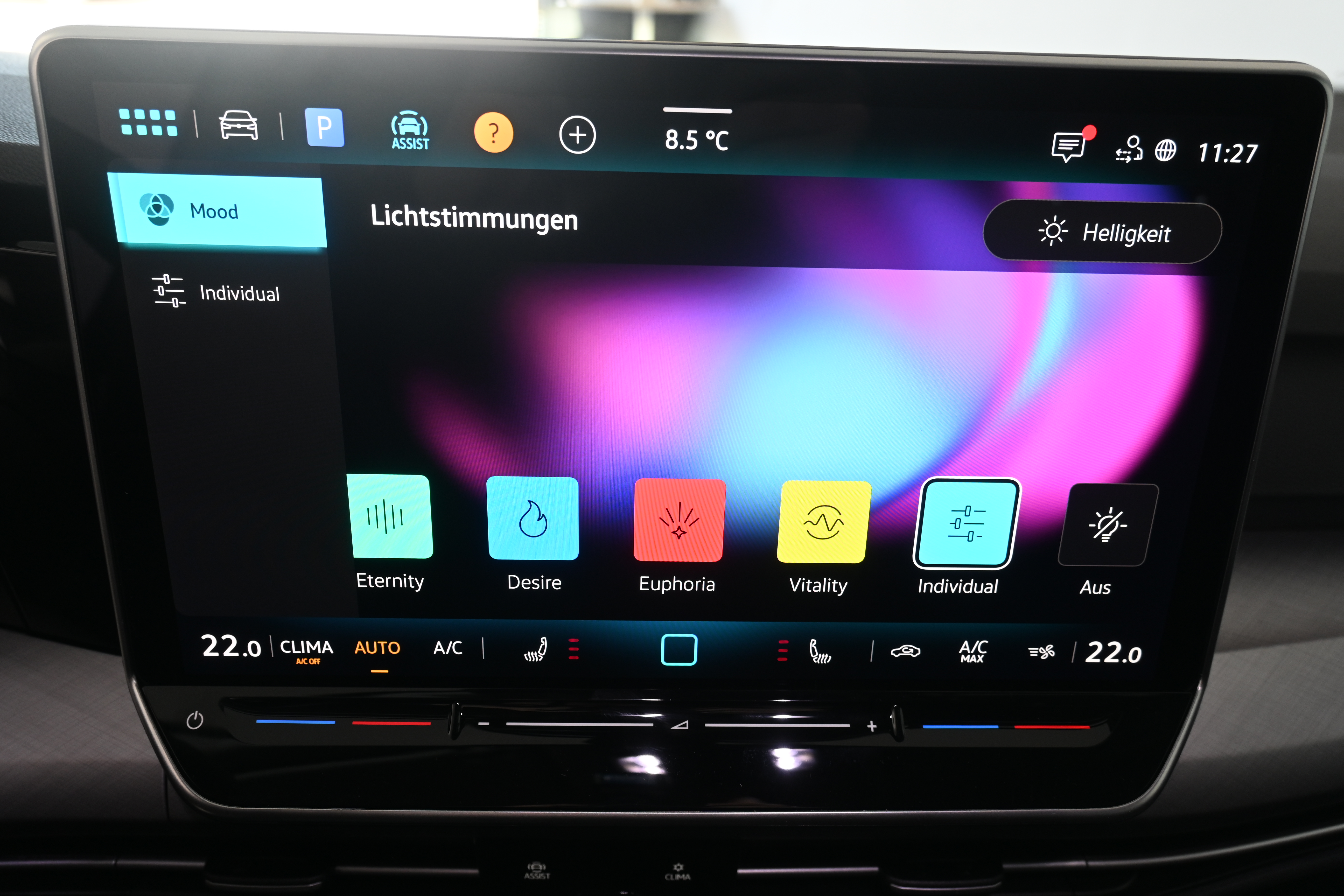Ausstattung überspringen 360° Kamera Abbiegebremsfunktion und Ablagefach und Steckdose 12V vorn Airbag für Fahrer und Beifahrer Ambientebeleuchtung 10-farbig Ambientebeleuchtung 30-farbig Anhängevorrichtung Anhängevorrichtung anklappbar App-Connect Wireless Außenspiegel elektrisch einstell- und Außenspiegelgehäuse/Türgriffe in Wagenf. Automatische Distanzregelung ACC Beifahrersitzlehne nicht umklappbar Bordwerkzeug und Wagenheber Chrom-Applikationen Dachreling in schwarz Dachreling silber eloxiert Dekoreinlagen "Nature Cross Brushed" Digital Cockpit Pro Digitaler Radioempfang DAB+ Doppelton-Signalhorn Dreipunkt-Automatiksicherheitsgurte Dreipunkt-Automatiksicherheitsgurte vorn Easy Open & Close Einparkhilfe Elektronische Differenzialsperre XDS Elektronische Parkbremse Elektronisches Stabilisierungsprogramm Fahrlichtschaltung automatisch Fernentriegelung für Rücksitzlehne Frontscheibe in Verbundsicherheitsglas Fußgängerschutzmaßnahmen Geschwindigkeitsbegrenzer mit Innenspiegel automatisch abblendend ISOFIX-Halteösen Klimaanlage "Climatronic" Komfortsitze vorn Kopfstützen (3 Stück) hinten Kreuzungsassistent LED-Leseleuchten vorn (2 Stück) LED-Plus-Scheinwerfer LED-Rückleuchten LED-Scheinwerfer Lendenwirbelstütze vorn Lenkrad beheizbar Leuchtweitenregulierung dynamisch Licht und Sicht Paket inkl. Light Assist Make-up-Spiegel beleuchtet Mittelarmlehne vorn Müdigkeits- und Ablenkungserkennung Multifunktionslenkrad in Leder Notbremsassistent "Front Assist" Notruf-Service Online Dienste Parken-und-Komfort-Paket Räder, 16" "Toulouse" Radio "Ready 2 Discover" 12,9" Display Radsicherungen Reifenkontrollanzeige Rückfahrkamera "Rear View" Rücksitzbank asym. geteilt umklappbar Schalthebelknauf in Leder Seitenairbags vorn mit Kopfairbag und Seitenscheiben hinten und Servolenkung elektromechanisch Sicherheitsoptimierte Kopfstützen vorn Sitzheizung vorne Sitzmittelbahnen in Stoff "Life" Spurhalteassistent "Lane Assist" Spurwechselassistent "Side Assist" Start-Stopp-System Steckdose 12V im Gepäckraum Steinschlagschutz Splitt Stoßfänger in Wagenfarbe Telefonschnittstelle Textilfußmatten vorne und hinten Tire Mobility Set Türgriffmulden beleuchtet Umfeldbeleuchtung mit Logoprojektion Umgebungsansicht "Area View" Unlimited-Paket Unlimited-Paket "Preisvorteil" USB-C-Schnittstellen vorn (2 Stück) Verkehrszeichenerkennung Vorbereitet für "Alcolock Interlock" Vorbereitet für VW Connect und Vordersitze mit Höheneinstellung VW Garantie 5 Jahre / 100.000 km Wärmeschutzverglasung grün Warndreieck Warnton und Warnleuchte Wegfahrsperre elektronisch Winterpaket Mehr anzeigen