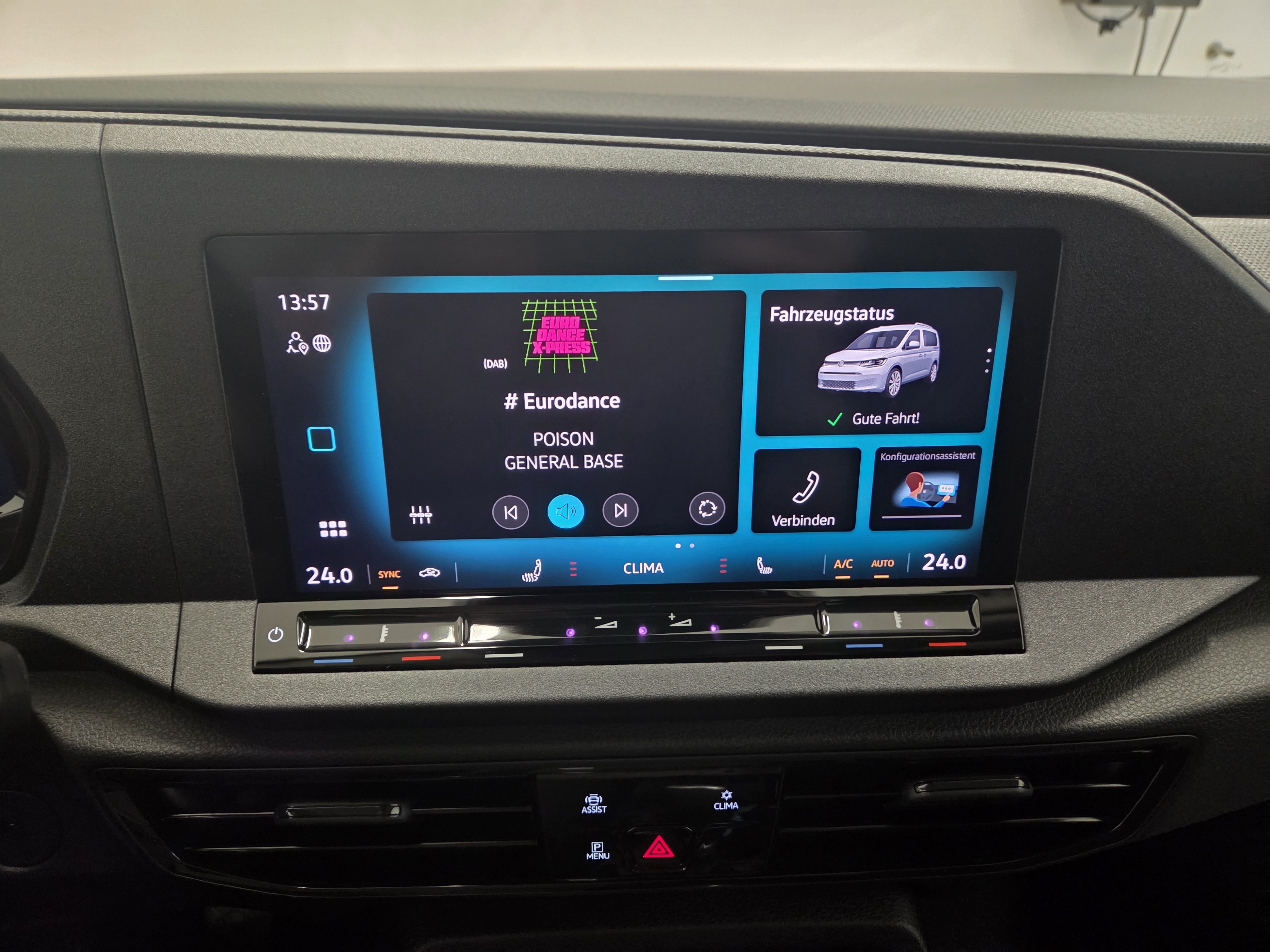 Ausstattung überspringen 3 % Unternehmerbonus 6-Gang-Schaltgetriebe Abgaskonzept, WLTP3 N1 EU6EA Ablenkungs- und Müdigkeitserkennung Airbag für Fahrer und Beifahrer Airbag, Seiten- und Kopfairbags vorne Anhängerkupplung Vorbereitung Anhängevorrichtung Vorbereitung Anschlussgarantie 2+3 Jahre, 150.000 km Antrieb, Frontantrieb App Connect App-Connect inkl. Wireless Assistenzpaket Außenspiegel beheizbar Außenspiegel elektrisch anklappbar Außenspiegel elektrisch anklappbar Außenspiegel verstellbar Außenspiegelgehäuse in Schwarz lackiert Ausweichunterstützung Automatische Distanzregelung Bodenbelag im Fahrerhaus, Teppich Bodenbelag im Fahrgastraum, Teppich Bremsassistent Bremskraftverstärker Cockpit-Blende matt Coming-Home-Funktion Dachgalerie im Fahrerhaus (Ablageschale) Dachreling-/Dachträger-Vorbereitung Digital Cockpit Digitaler Radioempfang (DAB+) Digitales Bordhandbuch Dreipunkt-Autom.-Sicherheitsgurte vorne Einparkhilfe im Heckbereich ESC (elektr. Stabilisierungskontrolle) Fahrer- und Beifahrerairbag Fahrerairbag Fahrlichtschaltung, automatisch Fenster ab B-Säule abgedunkelt Fenster, Fahrgastraum links hinten Fenster, Fahrgastraum links vorne Fenster, Fahrgastraum rechts hinten Fenster, Fahrgastraum rechts vorne Fenster, Heckfenster beheizbar Fensterheber vorne, elektrisch Front, 4M & eHybrid Paket Frontscheibe in Wärmeschutzglas Füllmenge des Kraftstofftanks ca. 50L Gepäckraumabdeckung Gurtanschnallwarnung Halogen-Doppelscheinwerfer H7 Handschuhfach mit Klappe, beleuchtet Heckscheiben Wisch-Waschanlage Innenbeleuchtung Fahrgastraum LED Innenspiegel, abblendbar Instrumenteneinsatz (km/h) Kältemittel R1234yf Kennzeichenbeleuchtung LED Kindersicherung elektrisch Kindersitzverankerung Klimaanlage "Air Care Climatronic" Klimaautomatik Kopfairbags Kraftstoffsystem Diesel Kreuzungsassistent Landessetzung Lautsprecher, 6 Stück Lendenwirbelstützen vorne Lendenwirbelstützen, vorne Leuchtweitenregulierung Licht- und Sicht-Paket Lichtsensor Luftausströmer, vorne Luftzusatzheizung, elektrisch Mittelarmlehne vorne Mittelarmlehne vorne, verstellbar Mittelkonsole Mobiltelefon-Schnittstelle Multifunktions-Lederlenkrad Multifunktionskamera Multifunktionslenkrad Nichtraucherausführung Notbremsassistent "Front Assist" Notrufsystem eCall Nutzfahrzeug-Paket Ohne externe elektrische Schnittstelle Ohne Lehnenentriegelung für Vordersitze Ohne Schnittstelle für externe Nutzung Parkbremse, elektronisch Parkhilfe hinten Parkhilfe vorne Räder Stahl 6,5 J x 15 Radio "Composition" Radvollblenden Regensensor Reifen ohne Festlegung der Reifenmarke Reifen, 205/65 R15 99H XL Reifenkontrollanzeige Reserverad in Fahrbereifung Reserverad in Fahrbereifung, Stahlfelge Rückfahrkamera Schalthebel in Leder Scheibenbremsen hinten, 15 Zoll Scheibenbremsen vorne, 15 Zoll Scheibenwaschdüsen beheizbar Scheibenwischer-Intervallschaltung Schlüssel (2 Stück) für Schließsystem Seitenairbags vorne Seitenfenster ab B-Säule abgedunkelt Seitenverkleidung Komfort Servotronic Sicherheitsgurte im Fahrgastraum Sitz, Fahrer höhenverstellbar Sitzbezug Stoff "Double Grid" Sitze, 3 Sitzplätze in der 2. Sitzreihe Sitzheizung vorne Sonnenblenden mit Spiegel Speedlimiter prädiktiv Spurhalteassistent Spurhalteassistent "Lane Assist" Spurwechselassistent "Side Assist" Start-Stopp-System Steckdose 12 Volt, im Laderaum Steinschlag-Schutz Unterboden Steuerungsnummer Steuerungsnummer Steuerungsnummer PKW-Zulassung Stoßfänger in Wagenfarbe lackiert Tagfahrlicht Thermoverglasung Tire Mobility Set Tür, Heckklappe mit Fenster Tür, Schiebetür im Fahrgastraum, links Tür, Schiebetür im Fahrgastraum, rechts USB Schnittstelle USB-Schnittstellen (Typ C) USB-Schnittstellen (Typ C) Verkehrszeichenerkennung Vorbereitung Alcohol Interlock Vorbereitung für "VW Connect/Plus" Wartungsintervall-Verlängerung Wegfahrsperre elektronisch Winterpaket Zentralverriegelung Zentralverriegelung/FFB+Innenbetätigung Zulässiges Gesamtgewicht 2.220 kg Zusätzliche Staubschutz-Dichtung außen Mehr anzeigen