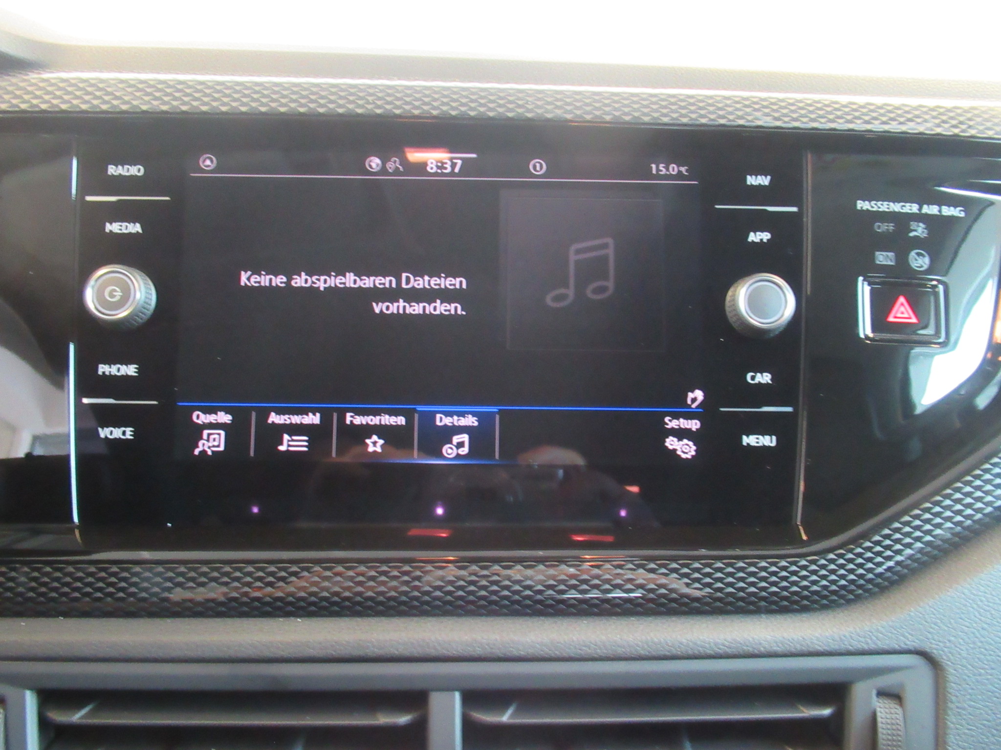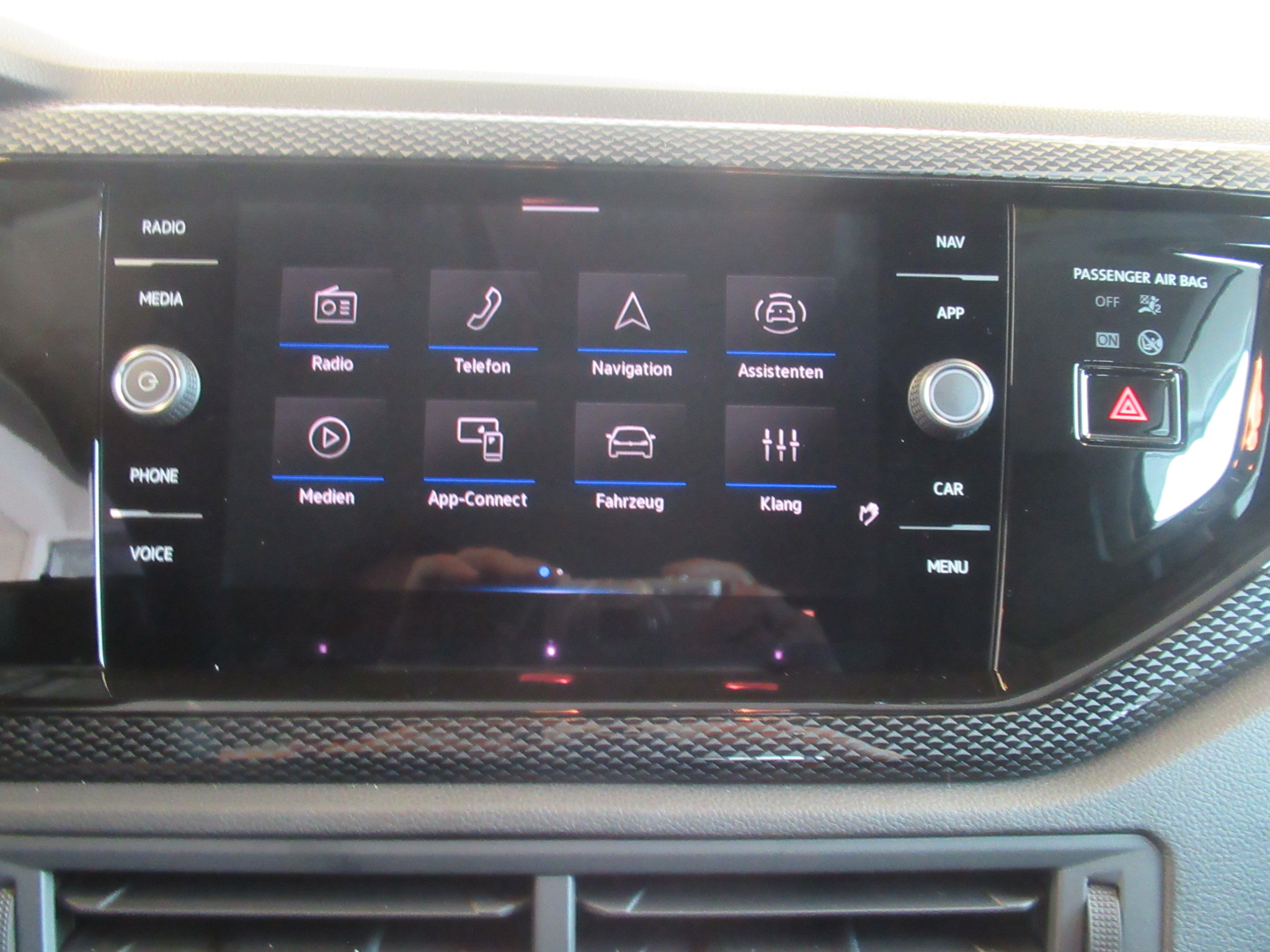 Fahrzeugdetails überspringen Ausstattung überspringen 4 Lautsprecher Ablagetaschen ABS Acoustic Parking System Airbag für Fahrer und Beifahrer App Connect Apple CarPlay Außenspiegel beheizbar Außenspiegel elektrisch Außenspiegel elektrisch verstellbar Außenspiegelgehäuse/Türgriffe in Wagenf. Außentemperaturanzeige Automatische Distanzregelung Berganfahrassistent Bordwerkzeug und Wagenheber Dachhimmel in Ceramique Dekoreinlagen "Lave Stone Black" Digital Cockpit Digitaler Radioempfang DAB+ Dreipunkt-Automatiksicherheitsgurt Dreipunkt-Automatiksicherheitsgurte Einparkhilfe hinten Elektronisches Stabilisierungsprogramm Fahrlichtschaltung automatisch Fensterheber elektrisch Fensterheber elektrisch hinten Fensterheber elektrisch vorne Fernbedienung für Zentralverriegelung Freisprecheinrichtung Frontscheibe in Verbundsicherheitsglas Fußgänger- und Radfahrererkennung Gepäckraumabdeckung Gepäckraumbeleuchtung Gepäckraumboden variabel Geschwindigkeitsbegrenzer Handbremshebelgriff in Leder Herstellergarantie Innenleuchten mit Abschaltverzögerung Instrumententafel geschäumt ISOFIX-Halteösen Klimaanlage mit Aktiv-Kombifilter Klimaautomatik Kopf- und Seitenairbags vorn Kopfairbags vorne Kopfstützen (3 Stück) hinten Kurven-Licht Ladeboden variabel LED-Rückleuchten LED-Scheinwerfer LED-Scheinwerfer mit Tagfahrlicht LED-Tagfahrlicht Lenksäule m. Höhen- und Längseinstellung Licht- und Regensensor Licht- und Sicht Paket inkl. LightAssist Lichtsensor Make-up-Spiegel beleuchtet Mittelarmlehne vorn Müdigkeits- und Ablenkungserkennung Multifunktionslenkrad Multifunktionslenkrad in Leder Notbremsassistent "Front Assist" Notruf-Service Park Distanz Kontrolle vorne und hinten Räder, 15" Essex Radio 8-Zoll Display Radsicherungen Reifenkontrollanzeige Rückfahrkamera Rückfahrkamera "Rear View" Rücksitzlehne asym. geteilt umklappbar Schalthebelknauf in Leder Scheibenwischer-Intervallschaltung Seitenairbag Fahrer und Beifahrer Seitenscheiben hinten und Heckscheibe Servolenkung Servolenkung Sicherheitsoptimierte Kopfstützen vorn Sitzheizung vorne Sitzmittelbahnen in Stoff "Life" Spurhalteassistent "Lane Assist" Start-Stopp-System Steuerungsnummer Stoßfänger in Wagenfarbe Telefonschnittst. mit indukt. Ladefunkt. Tire Mobility Set Unlimited-Paket inkl. "Ready 2 Discover" USB-C-Schnittstellen vorn (2 Stück) Verkehrszeichenerkennung Vorbereitet für VW Connect und Vordersitze mit Höheneinstellung VW Garantie 5 Jahre 100.000 km Wärmeschutzverglasung grün Warndreieck Warnleuchte für Waschwasserstand Wegfahrsperre elektronisch Zentralverriegelung Mehr anzeigen