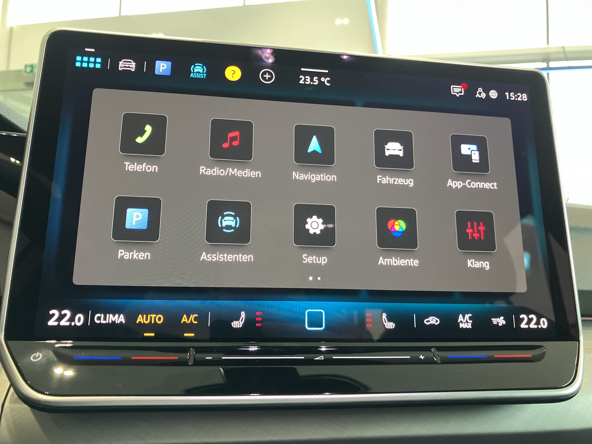 Ausstattung überspringen 6+1 Lautsprecher Abbiegebremsfunktion und Ablagefach und Steckdose 12V vorn Airbag für Fahrer und Beifahrer Ambientebeleuchtung 10-farbig Ambientebeleuchtung 30-farbig App-Connect Wireless Außenspiegel elektrisch einstell- und Außenspiegelgehäuse/Türgriffe in Wagenf. Automatische Distanzregelung ACC Bordwerkzeug und Wagenheber Chrom-Applikationen Dekoreinlagen "Nature Cross Brushed" Digital Cockpit Pro Digitaler Radioempfang DAB+ Diversity-Antenne für FM-Empfang Doppelton-Signalhorn Dreipunkt-Automatiksicherheitsgurt Dreipunkt-Automatiksicherheitsgurte Dreipunkt-Automatiksicherheitsgurte vorn Elektronische Differenzialsperre XDS Elektronische Parkbremse Elektronisches Stabilisierungsprogramm Fahrlichtschaltung automatisch Freischaltbare Sonderausstattung: Freischaltbare Sonderausstattung: Frontscheibe in Verbundsicherheitsglas Fußgängerschutzmaßnahmen Geschwindigkeitsbegrenzer mit Innenspiegel automatisch abblendend ISOFIX-Halteösen Klimaanlage "Climatronic" Komfortsitze vorn LED-Leseleuchten vorn (2 Stück) LED-Rückleuchten LED-Scheinwerfer Leichtmetallfelgen 18 Zoll Lendenwirbelstütze vorn Leuchtweitenregulierung dynamisch Licht und Sicht Paket inkl. Light Assist Make-up-Spiegel beleuchtet Mittelarmlehne vorn Müdigkeits- und Ablenkungserkennung Multifunktionslenkrad in Leder Notbremsassistent "Front Assist" Notruf-Service Online Dienste Parken-und-Komfort-Paket Räder, 18" Catania Radio "Ready 2 Discover" 12,9" Display Radsicherungen Reifenkontrollanzeige Rückfahrkamera "Rear View" Rücksitzbank asym. geteilt umklappbar Schalthebelknauf in Leder Seitenairbags vorn mit Kopfairbag und Seitenscheiben hinten und Heckscheibe Servolenkung elektromechanisch Sicherheitsoptimierte Kopfstützen vorn Sitzheizung vorne Sitzmittelbahnen in Stoff "Life" Spurhalteassistent "Lane Assist" Start-Stopp-System Steckdose 12V im Gepäckraum Stoßfänger in Wagenfarbe Telefonschnittstelle Textilfußmatten vorne und hinten Tire Mobility Set Türgriffmulden beleuchtet Umfeldbeleuchtung mit Logoprojektion Unlimited-Paket Unlimited-Paket "Preisvorteil" USB-C-Schnittstellen vorn (2 Stück) Verkehrszeichenerkennung Vorbereitet für "Alcolock Interlock" Vorbereitet für VW Connect und Vordersitze mit Höheneinstellung VW Garantie 5 Jahre / 100.000 km Wärmeschutzverglasung grün Warndreieck Warnton und Warnleuchte Wegfahrsperre elektronisch Winterpaket Mehr anzeigen