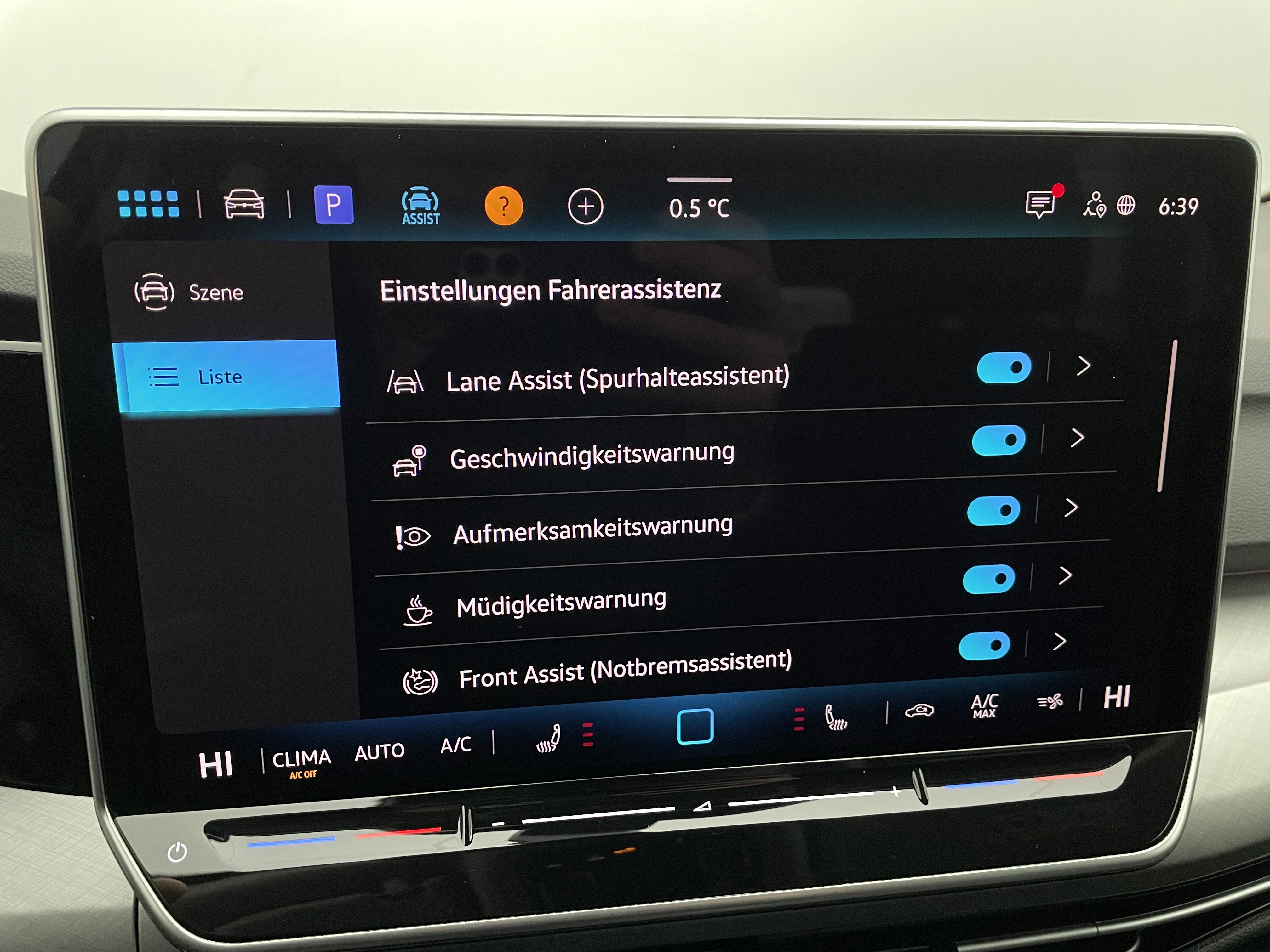 Ausstattung überspringen Abbiegebremsfunktion und Ablagefach und Steckdose 12V vorn Airbag für Fahrer und Beifahrer Ambientebeleuchtung 10-farbig Anhängevorrichtung Anhängevorrichtung anklappbar App-Connect Wireless Außenspiegel elektrisch einstell- und Außenspiegelgehäuse/Türgriffe in Wagenf. Automatische Distanzregelung ACC Beifahrersitzlehne nicht umklappbar Bordwerkzeug und Wagenheber Chrom-Applikationen Dachreling in schwarz Dekoreinlagen "Nature Cross Brushed" Digital Cockpit Pro Digitaler Radioempfang DAB+ Doppelton-Signalhorn Dreipunkt-Automatiksicherheitsgurte Dreipunkt-Automatiksicherheitsgurte vorn Easy Open & Close Einparkhilfe Elektronische Differenzialsperre XDS Elektronische Parkbremse Elektronisches Stabilisierungsprogramm Fahrlichtschaltung automatisch Fernentriegelung für Rücksitzlehne Frontscheibe in Verbundsicherheitsglas Fußgängerschutzmaßnahmen Geschwindigkeitsbegrenzer mit Innenspiegel automatisch abblendend ISOFIX-Halteösen Klimaanlage "Climatronic" Komfortsitze vorn Kopfstützen (3 Stück) hinten Kreuzungsassistent LED-Leseleuchten vorn (2 Stück) LED-Rückleuchten LED-Scheinwerfer Lendenwirbelstütze vorn Lenkrad beheizbar Leuchtweitenregulierung dynamisch Licht und Sicht Paket inkl. Light Assist Make-up-Spiegel beleuchtet Mittelarmlehne vorn Müdigkeits- und Ablenkungserkennung Multifunktionslenkrad in Leder Notbremsassistent "Front Assist" Notruf-Service Online Dienste Parken-und-Komfort-Paket Räder, 16" "Zürich" Radio "Ready 2 Discover" 12,9" Display Radsicherungen Reifenkontrollanzeige Reserverad gewichts- und platzsparend Reserverad in Fahrbereifung Rückfahrkamera "Rear View" Rücksitzbank asym. geteilt umklappbar Schalthebelknauf in Leder Seitenairbags vorn mit Kopfairbag und Seitenscheiben hinten und Servolenkung elektromechanisch Sicherheitsoptimierte Kopfstützen vorn Sitzheizung vorne Sitzmittelbahnen in Stoff "Life" Spurhalteassistent "Lane Assist" Spurwechselassistent "Side Assist" Start-Stopp-System Steckdose 12V im Gepäckraum Stoßfänger in Wagenfarbe Telefonschnittstelle Textilfußmatten vorne und hinten Tire Mobility Set Türgriffmulden beleuchtet Umfeldbeleuchtung mit Logoprojektion Unlimited-Paket Unlimited-Paket "Preisvorteil" USB-C-Schnittstellen vorn (2 Stück) Verkehrszeichenerkennung Vorbereitet für "Alcolock Interlock" Vorbereitet für VW Connect und Vordersitze mit Höheneinstellung VW Garantie 5 Jahre / 100.000 km Wärmeschutzverglasung grün Warndreieck Warnton und Warnleuchte Wegfahrsperre elektronisch Winterpaket Mehr anzeigen