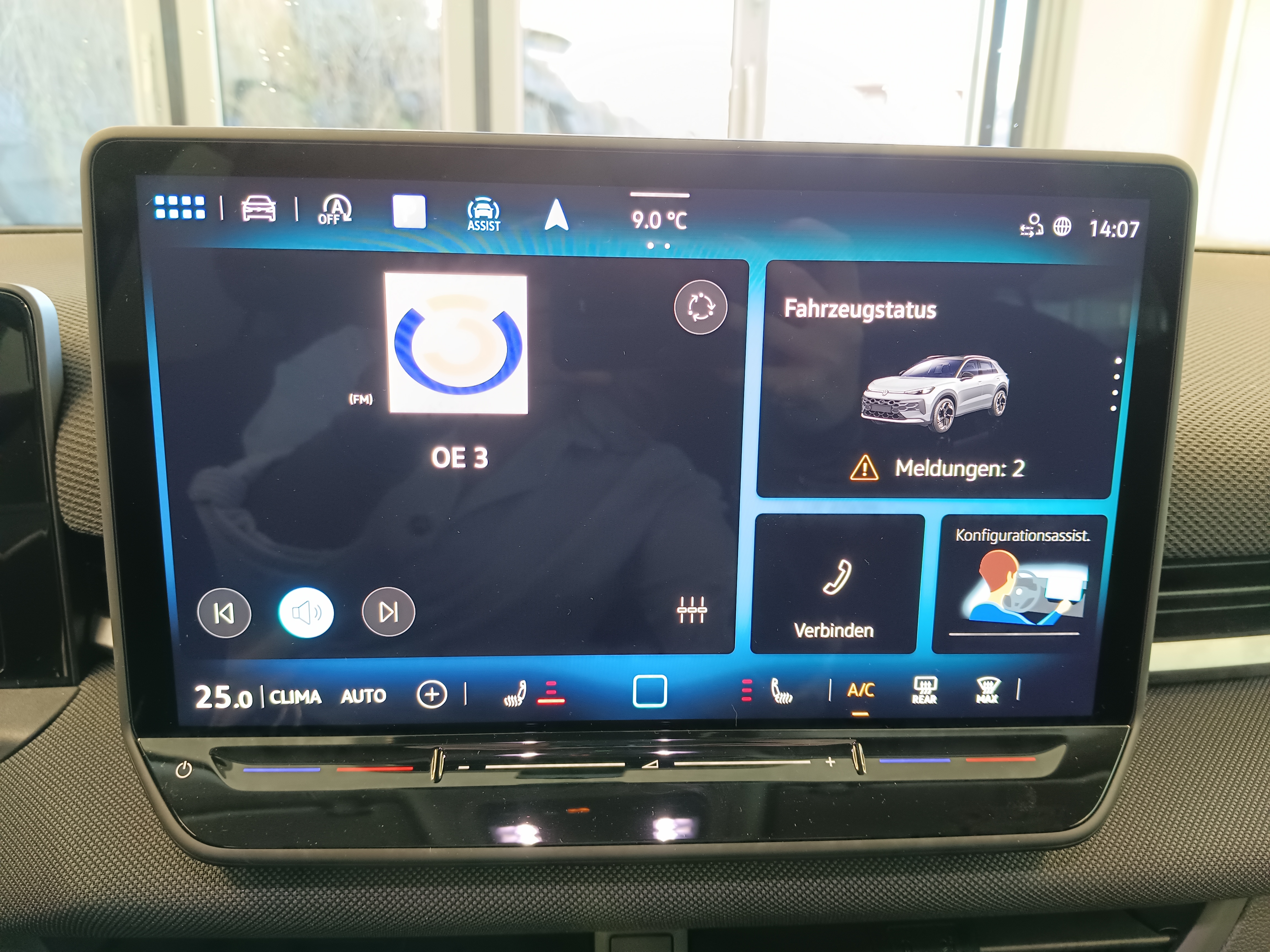 Ausstattung überspringen 12-V-Steckdose im Gepäckraum 3-Punktautomatikgurte vorne 6 Lautsprecher Abbiegebremsfunktion und Ablenkungs- und Müdigkeitserkennung Airbag für Fahrer und Beifahrer App Connect App-Connect inkl. Wireless-Funktion Außenspiegel elektrisch Außenspiegel elektrisch verstellbar Außenspiegelgehäuse in Dachfarbe Automatische Distanzregelung Automatische Distanzregelung ACC Beifahrerairbag Beifahrersitzlehne komplett umklappbar Berganfahrassistent Bordwerkzeug und Wagenheber Chrom-Applikationen an Dachhimmel in Ceramique Dachreling Dachreling schwarz Dekor-Set Digital Cockpit Digitaler Radioempfang DAB+ Digitales Display Diversity-Antenne für FM-Empfang Doppelton-Signalhorn Dreipunkt-Automatiksicherheitsgurte Dreipunkt-Automatiksicherheitsgurte vorn Einparkhilfe vorn und hinten Elektronische Parkbremse Elektronisches Stabilisierungsprogramm Fahrerairbag Fahrlichtschaltung automatisch mit Fernlichtregelierung "Light Assist" Frontscheibe in Verbundsicherheitsglas Gepäckraumboden variabel Geschwindigkeitsbegrenzer mit Infotainment-System 12,9 Zoll Innenspiegel automatisch abblendend ISOFIX-Halteösen Klimaanlage "Climatronic" mit Komfortsitze vorn Kopfairbags vorn und hinten Kreuzungsassistent LED-Hauptscheinwerfer LED-Rückleuchten LED-Rückleuchten LED-Scheinwerfer Leichtmetallfelgen 17 Zoll Lendenwirbelstützen vorn Leuchtweitenregulierung Make-up-Spiegel beleuchtet Mittelarmlehne vorn Multifunktionslenkrad in Leder Nebelschlusslicht einseitig Notbremsassistent "Front Assist" mit Notruf-Service Räder 16" Bilbao Räder, 17" Lima Radio Regensensor Reifenkontrollanzeige Rückfahrkamera "Rear View" Rücksitzbank ungeteilt Schlüsselloses Startsystem Seitenscheiben hinten und Servolenkung elektromechanisch Sicherheitsoptimierte Kopfstützen vorn Sitzmittelbahnen der Vordersitze und Spurhalteassistent Spurhalteassistent "Lane Assist" Spurwechselassistent Spurwechselassistent "Side Assist" mit Start-Stopp-System Steinschlagschutz Splitt Stoßfänger in Wagenfarbe Telefonschnittstelle "Comfort" mit Textilfußmatten vorn und hinten Tire Mobility Set Türgriffmulden beleuchtet Umfeldbeleuchtung mit Logoprojektion USB Schnittstelle USB-C-Schnittstellen vorn (2 Stk) mit Verbandtasche, Warndreieck und Warnweste Verkehrszeichenerkennung Vorbereitet für Navi Vorbereitet für VW Connect und Vorbereitung Alcohol interlock Vordersitze mit Höheneinstellung VW Garantie 5 Jahre / 100.000 km Wärmeschutzverglasung grün Warnton und Warnleuchte Wegfahrsperre Wegfahrsperre elektronisch Winterpaket Zierleisten in Pyritsilber matt Mehr anzeigen