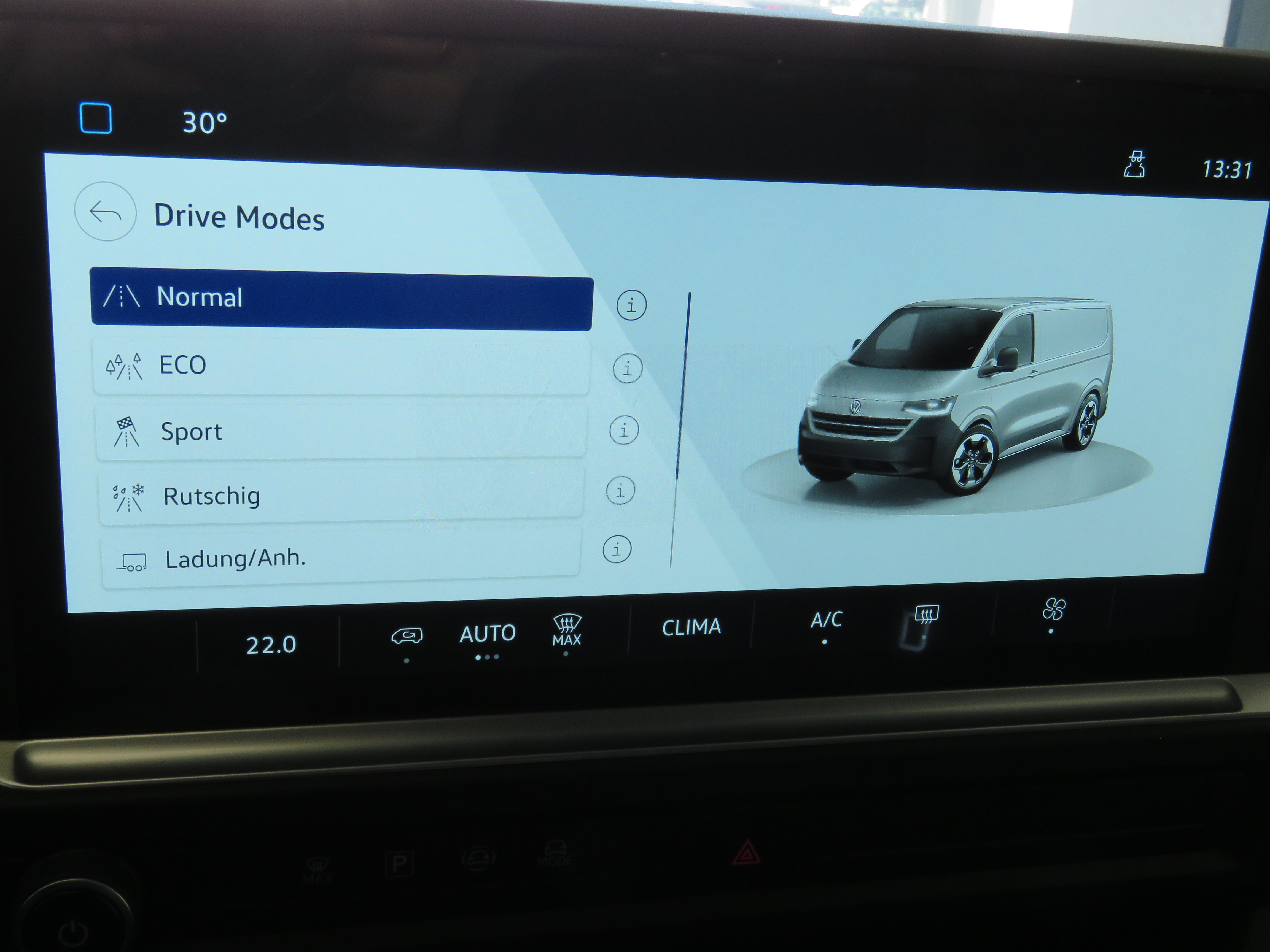Ausstattung überspringen 4 % e-Power Bonus 5G Modem 6 % Unternehmerbonus 8 Jahre Garantie* auf Hochvoltbatterie Airbag für Fahrer und Beifahrer Aktive Kühlergrillöffnung/-schließung Anhänger Paket Anschlussgarantie 2+3 Jahre, 250.000 km Außenspiegel, beheizbar Außenspiegelgehäuse/Türgriffe in schwarz Bodenbelag Fahrerhaus, Gummi Bodenbelag Laderaum, Holz Bremskraftverstärker, elektromechanisch Dachkonsole klein Digitales Bordhandbuch Digitales Cockpit Doppeltonsignalhorn E-Mobilitätsbonus - Unternehmer EFB-Fahrzeugbatterie 75 Ah Einstiegleiste Schiebetür Kunststoff Einstiegshilfe an der A-Säule BFS Eintonsignalhorn Elektrische Zusatzheizung Elektrischer Motor ESP elektron. Stabilisierungsprogramm Fahrerassistenzpaket Fernlichtassistent "Light Assist" Frontscheibe in Verbundsicherheitsglas Generator 230 A Geschwindigkeitsregelanlage Gurtstraffer, Fahrer- und Beifahrersitz Haltegriffe am Dachrahmen Handschuhfach mit Klappe Handschuhfach, abschließbar Heckfenster beheizbar Heckscheiben Wisch-Waschanlage Heiz- und Belüftungsanlage Höchstgeschwindigkeitsbegrenzung 150km/h Kapazität Hochvoltbatterie 64 kWh netto Klimaanlage im FH, 1 Zone Kopfstützen höhenverstellbar Kühlergrill in Clear White Ladekabel Mode 3 Typ 2 Landessetzung Lautsprecher, 4 Stück LED-Hauptscheinwerfer LED-Leuchten im Dachhimmel LED-Leuchten im Fahrerhaus LED-Leuchten im LDR, superhell 3 Stk. LED-Rückleuchten ME-Funktionsfahrzeug Mittelkonsole schmal Mobiltelefon-Schnittstelle Müdigkeitserkennung Multifunktionslenkrad Notbremsassistent Notrufsystem eCall Ohne Abgasstandard Ohne Beschleunigungsbeg./Anfahrunt. Ohne Dachreling/Dachlastträger Ohne Generator Ohne Kraftstofftank Ohne Sitze im Laderaum ParkPilot hinten Premium Unterbodenkonservierung Radabdeckung Mitte Räder Stahl 6,5 J x 16 silber Radio mit Touch-Farbdisplay Radschrauben Standard Reifen 215/65 R16 C 109 T Reifendruck-Kontrollsystem Scheibenwischer-Intervallschaltung Schmutzfänger vorne Schriftzug "Transporter" am Heck Seitenverkleidung im LDR, hoch Sicherheitsinnenspiegel, manuell Sitzbezug in Stoff gestreift Sitze, Beifahrerdoppelsitzbank Sitzpaket mit Beifahrerdoppelsitzbank Spurhalteassistent "Lane Assist" Steckdose 12V in der Mittelkonsole Steuerung Sitzpaket Steuerungsnummer Stoßfänger grau, unlackiert Tire Mobility Set Trennwand hoch, mit festem Fenster Trimlevel Basis Tür, Heckklappe mit Fenster Tür, Schiebetür im LDR rechts Typschild für Nutzfahrzeug-Zulassung N1 USB Schnittstelle USB-Daten-/Ladesteckdosen 15W (2 Stück) USB-Steckdosen vorne (7 Stück) Verbandsmaterial, Warndreieck, Warnweste Verkehrszeichenerkennung Verzurrösen (6 Stück) Vorbereitung Alcohol Interlock Wärmepumpe zur Reichweitenoptimierung Wärmeschutzverglasung Wegfahrsperre elektronisch Zentralverr. "Keyless Start" Zulässiges Gesamtgewicht 3.125 - 3.300kg Mehr anzeigen