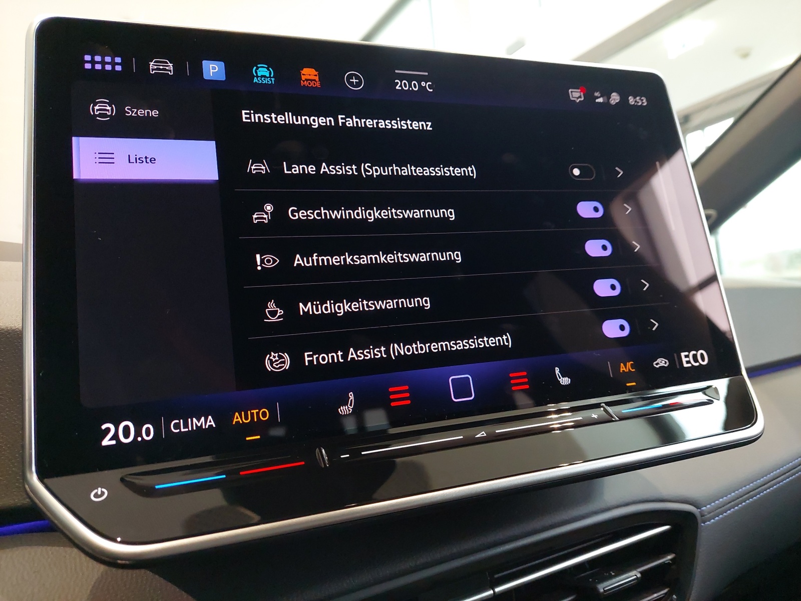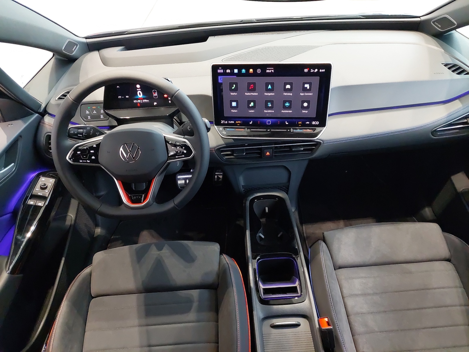 Ausstattung überspringen 11 kW max. AC-Ladeleistung 185 kW DC-Ladeleistung 5-Sitzer 79 kWh Batterie Abbiegebremsfunktion und Adaptive Fahrwerksregelung DCC inkl. Airbag für Fahrer und Beifahrer Ambientebeleuchtung 30-farbig App-Connect inkl. Wireless-Funktion Armlehne für Vordersitze Assistenz-Paket "IQ.DRIVE" Augmented-Reality-Head-up-Display Außenspiegel mit Memoryfunktion Außenspiegel-Projektion Automatische Distanzregelung ACC Bordwerkzeug und Tire Mobility Set C-Säule Folierung im FIRE+ICE Design CCS-Ladedose (Combined-Charging-System) Dachrahmenleiste foliert Diebstahlwarnanlage mit Digitaler Radioempfang DAB+ Dreipunkt-Automatiksicherheitsgurte Dynamische Fernlichtregulierung e-Sound Einton-Signalhorn ergoActive-Sitze vorn FIRE+ICE Schriftzug auf der Tür Folierung im F+I Design am Dach Frontscheibe in Verbundsicherheitsglas Gepäckraumboden herausnehmbar GTX Schriftzug auf der Heckklappe Herstellergarantie inkl. ID.Light Innenraum ist farblich zweigeteilt: Innenspiegel automatisch abblendend Instrumententafel in Soul Schwarz IQ.LIGHT - LED-Matrix-Scheinwerfer ISOFIX-Halteösen Klimaanlage "Air Care Climatronic" Kopfairbags vorn und hinten Ladekabel für Haushaltssteckdose (230V) Ladekabel Mode 3 Typ 2, 16 A LED-Rückleuchten Leiste zwischen den Scheinwerfern Lendenwirbelstützen vorne Lenkradspange mit farbigen Nähten Make-up-Spiegel beleuchtet Mittelkonsole m. beleuchtetem Ablagefach Müdigkeits- und Ablenkungserkennung Multifunktionslenkrad beheizbar Navigationssystem "Discover Pro" Notbremsassistent "Front Assist" Notruf-Service Parkassistent "Park Assist Plus" Pedale in Edelstahl Proaktives Insassenschutzsystem in Progressivlenkung Räder, 20" Locarno Radnabenabdeckung mit GTX-Schriftzug Regensensor Reifenkontrollanzeige Rückfahrkamera "Rear View" Rücksitzlehne asym. geteilt umklappbar Schlüsselloses Schließ- und Startsystem Seitenscheiben hinten und Servolenkung elektromechanisch Sitze sind inspiriert aus den Sitzmittelbahnen in Mikrovlies Soundsystem "Harman Kardon" Sportfahrwerk Sprachassistent IDA Spurhalteassistent "Lane Assist" Steckdose 12-V im Gepäckraum Stoßfänger in sportlichem Design Telefonschnittstelle "Comfort" mit Textilfußmatten mit FIRE+ICE Bestickung Textilfußmatten vorn und hinten Türverkleidung in Art Velours Türverkleidung in Kunstleder Umfeldbeleuchtung mit Logoprojektion USB-C Schnittstellen vorne (2 Stück) Verkehrszeichenerkennung Vorbereitet für "Alcolock interlock" Vorbereitet für VW Connect und Vordersitze beheizbar Vordersitze mit Höheneinstellung Vordersitze mit Massagefunktion VW Garantie 5 Jahre 100.000 km Wärmepumpe zur Reichweitenoptimierung Warndreieck Warnton und Warnleuchte Wegfahrsperre elektronisch Mehr anzeigen