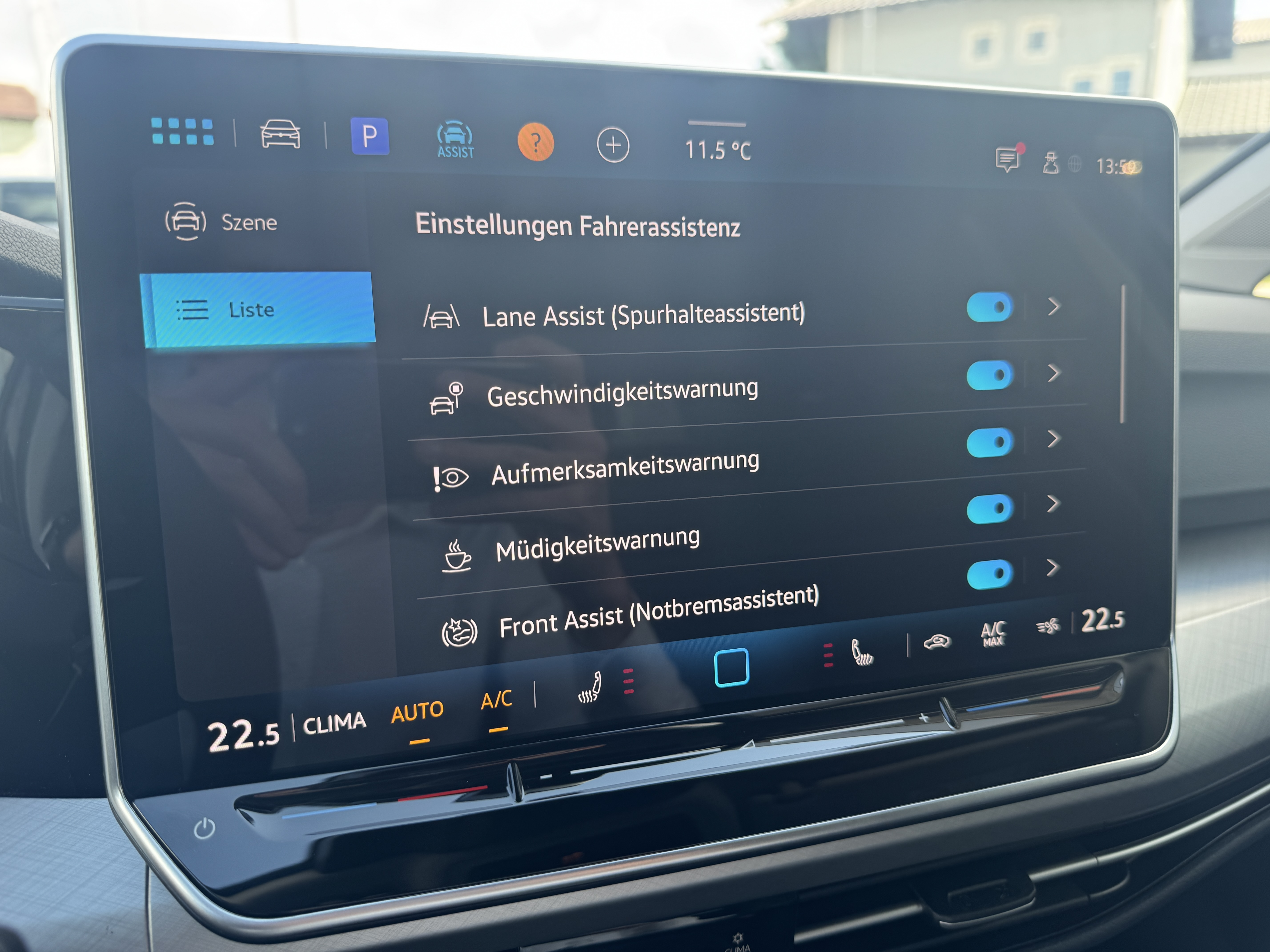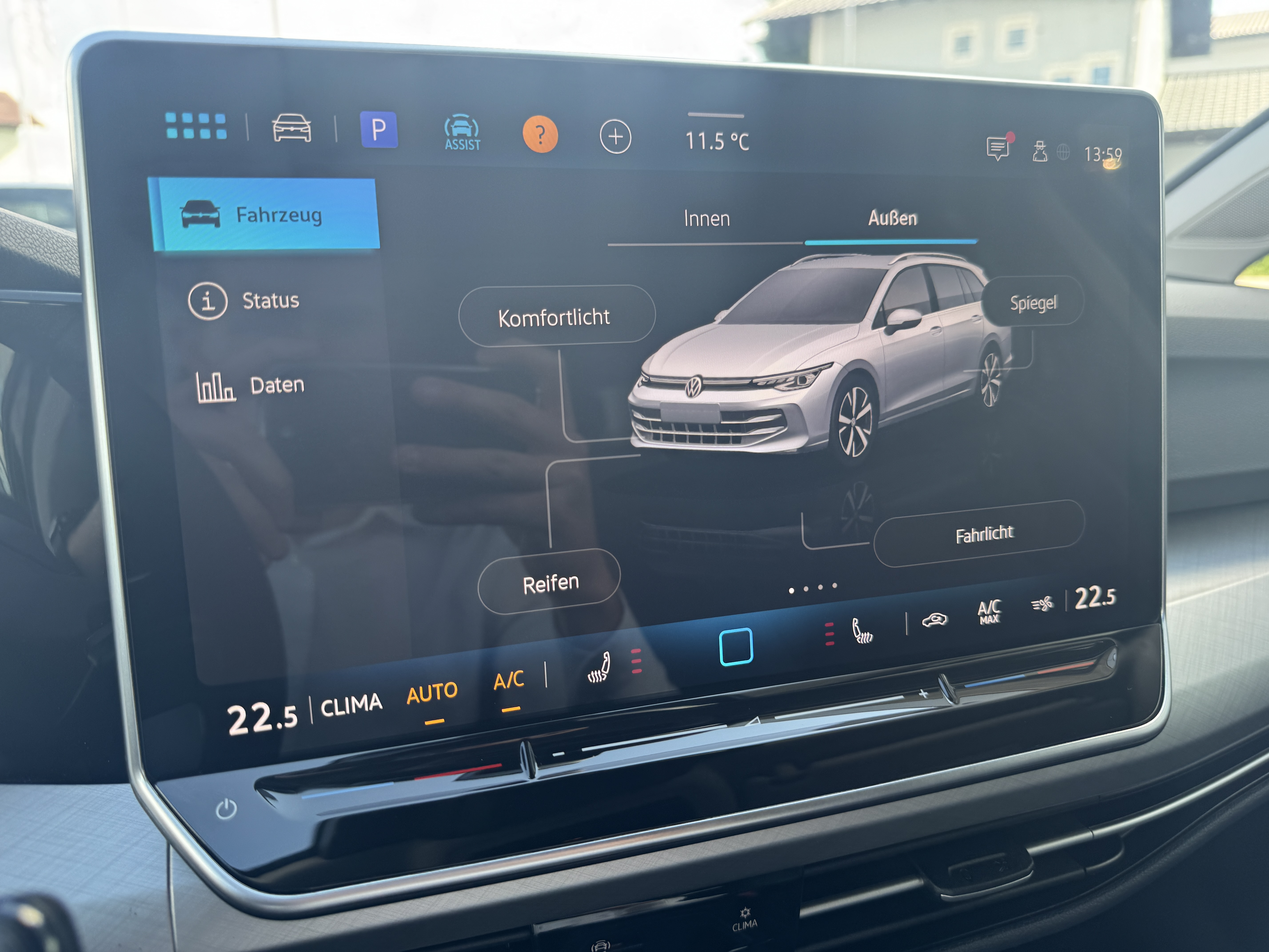 Ausstattung überspringen 360° Kamera Abbiegebremsfunktion und Ablagefach und Steckdose 12V vorn Airbag für Fahrer und Beifahrer Ambientebeleuchtung 10-farbig Ambientebeleuchtung 30-farbig Anhängevorrichtung Anhängevorrichtung anklappbar App-Connect Wireless Außenspiegel elektrisch einstell- und Außenspiegelgehäuse/Türgriffe in Wagenf. Automatische Distanzregelung ACC Beifahrersitzlehne nicht umklappbar Bordwerkzeug und Wagenheber Chrom-Applikationen Dachreling in schwarz Dachreling silber eloxiert Dekoreinlagen "Nature Cross Brushed" Digital Cockpit Pro Digitaler Radioempfang DAB+ Doppelton-Signalhorn Dreipunkt-Automatiksicherheitsgurte Dreipunkt-Automatiksicherheitsgurte vorn Easy Open & Close Einparkhilfe Elektronische Differenzialsperre XDS Elektronische Parkbremse Elektronisches Stabilisierungsprogramm Fahrlichtschaltung automatisch Fernentriegelung für Rücksitzlehne Frontscheibe in Verbundsicherheitsglas Fußgängerschutzmaßnahmen Geschwindigkeitsbegrenzer mit Innenspiegel automatisch abblendend IQ.LIGHT - LED-Matrix-Scheinwerfer ISOFIX-Halteösen Klimaanlage "Climatronic" Komfortsitze vorn Kopfstützen (3 Stück) hinten LED-Leseleuchten vorn (2 Stück) LED-Rückleuchten LED-Scheinwerfer Leichtmetallfelgen 18 Zoll Lendenwirbelstütze vorn Lenkrad beheizbar Leuchtweitenregulierung dynamisch Licht und Sicht Paket inkl. Light Assist Make-up-Spiegel beleuchtet Mittelarmlehne vorn Müdigkeits- und Ablenkungserkennung Multifunktionslenkrad in Leder Notbremsassistent "Front Assist" Notruf-Service Online Dienste Parken-und-Komfort-Paket Progressivlenkung Räder, 18" Catania Radio "Ready 2 Discover" 12,9" Display Radsicherungen Reifenkontrollanzeige Rückfahrkamera "Rear View" Rücksitzbank asym. geteilt umklappbar Seitenairbags vorn mit Kopfairbag und Seitenscheiben hinten und Servolenkung elektromechanisch Sicherheitsoptimierte Kopfstützen vorn Sitzheizung vorne Sitzmittelbahnen in Stoff "Life" Sportfahrwerk Sportfahrwerk Spurhalteassistent "Lane Assist" Start-Stopp-System Steckdose 12V im Gepäckraum Stoßfänger in Wagenfarbe Telefonschnittstelle Textilfußmatten vorne und hinten Tire Mobility Set Türgriffmulden beleuchtet Umfeldbeleuchtung mit Logoprojektion Umgebungsansicht "Area View" Unlimited-Paket Unlimited-Paket "Preisvorteil" USB-C-Schnittstellen vorn (2 Stück) Verkehrszeichenerkennung Vorbereitet für "Alcolock Interlock" Vorbereitet für VW Connect und Vordersitze mit Höheneinstellung VW Garantie 5 Jahre / 100.000 km Wärmeschutzverglasung grün Warndreieck Warnton und Warnleuchte Wegfahrsperre elektronisch Winterpaket Mehr anzeigen