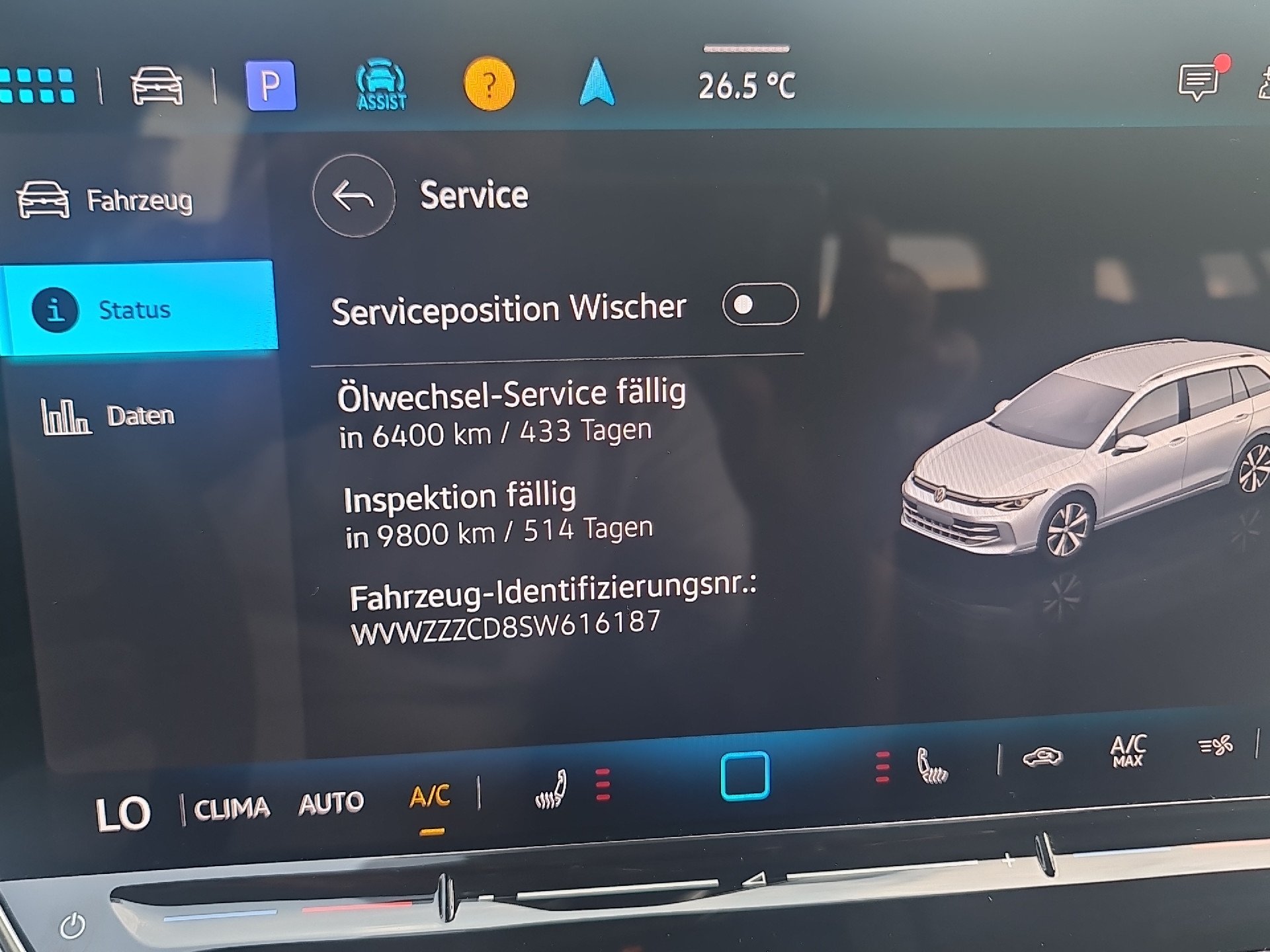 Ausstattung überspringen Abbiegebremsfunktion und Ablagefach und Steckdose 12V vorn Airbag für Fahrer und Beifahrer Ambientebeleuchtung 10-farbig App-Connect Wireless Außenspiegel elektrisch einstell- und Außenspiegelgehäuse/Türgriffe in Wagenf. Automatische Distanzregelung ACC Beifahrersitzlehne nicht umklappbar Bordwerkzeug und Wagenheber Chrom-Applikationen Dachreling in schwarz Dekoreinlagen "Nature Cross Brushed" Digital Cockpit Pro Digitaler Radioempfang DAB+ Doppelton-Signalhorn Dreipunkt-Automatiksicherheitsgurte Dreipunkt-Automatiksicherheitsgurte vorn Easy Open & Close Einparkhilfe Elektronische Differenzialsperre XDS Elektronische Parkbremse Elektronisches Stabilisierungsprogramm Fahrlichtschaltung automatisch Fernentriegelung für Rücksitzlehne Frontscheibe in Verbundsicherheitsglas Fußgängerschutzmaßnahmen Geschwindigkeitsbegrenzer mit Innenspiegel automatisch abblendend ISOFIX-Halteösen Klimaanlage "Climatronic" Komfortsitze vorn Kopfstützen (3 Stück) hinten LED-Leseleuchten vorn (2 Stück) LED-Rückleuchten LED-Scheinwerfer Lendenwirbelstütze vorn Lenkrad beheizbar Leuchtweitenregulierung dynamisch Licht und Sicht Paket inkl. Light Assist Make-up-Spiegel beleuchtet Mittelarmlehne vorn Müdigkeits- und Ablenkungserkennung Multifunktionslenkrad in Leder Navigationssystem Navigationssystem "Discover" 12,9" Disp. Notbremsassistent "Front Assist" Notruf-Service Online Dienste Parken-und-Komfort-Paket Räder, 17" Nottingham Radsicherungen Reifenkontrollanzeige Reserverad gewichts- und platzsparend Reserverad in Fahrbereifung Rückfahrkamera "Rear View" Rücksitzbank asym. geteilt umklappbar Schalthebelknauf in Leder Seitenairbags vorn mit Kopfairbag und Seitenscheiben hinten und Servolenkung elektromechanisch Sicherheitsoptimierte Kopfstützen vorn Sitzheizung vorne Sitzmittelbahnen in Stoff "Life" Spurhalteassistent "Lane Assist" Start-Stopp-System Steckdose 12V im Gepäckraum Stoßfänger in Wagenfarbe Telefonschnittstelle Textilfußmatten vorne und hinten Tire Mobility Set Türgriffmulden beleuchtet Umfeldbeleuchtung mit Logoprojektion Unlimited-Paket Unlimited-Paket "Preisvorteil" USB-C-Schnittstellen vorn (2 Stück) Verkehrszeichenerkennung Vorbereitet für "Alcolock Interlock" Vorbereitet für VW Connect und Vordersitze mit Höheneinstellung VW Garantie 5 Jahre / 100.000 km Wärmeschutzverglasung grün Warndreieck Warnton und Warnleuchte Wegfahrsperre elektronisch Winterpaket Mehr anzeigen