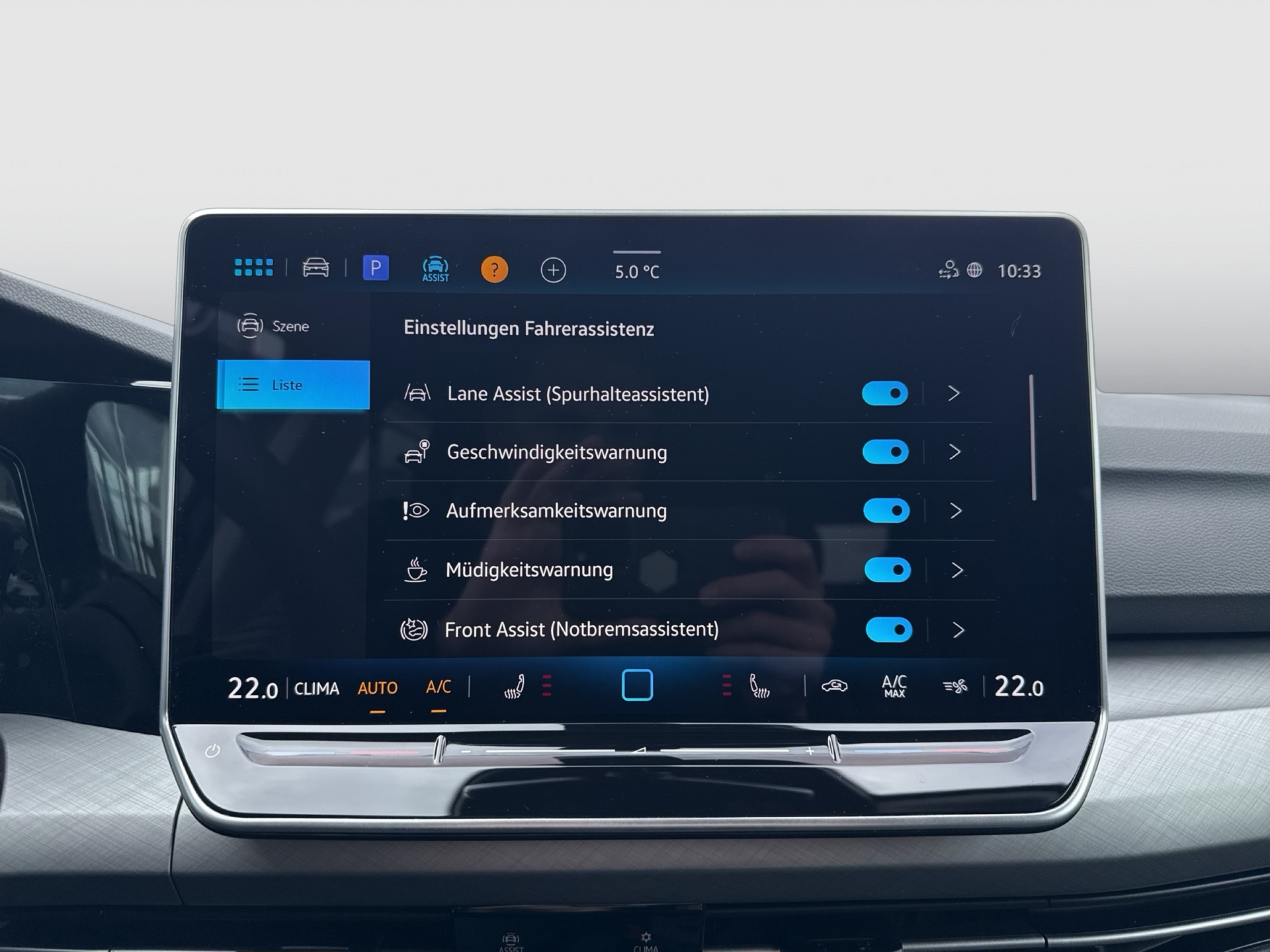 Ausstattung überspringen 360° Kamera Abbiegebremsfunktion und Ablagefach und Steckdose 12V vorn Airbag für Fahrer und Beifahrer Ambientebeleuchtung 10-farbig Anhängevorrichtung Anhängevorrichtung anklappbar App-Connect Wireless Außenspiegel elektrisch einstell- und Außenspiegelgehäuse/Türgriffe in Wagenf. Automatische Distanzregelung ACC Beifahrersitzlehne nicht umklappbar Bordwerkzeug und Wagenheber Chrom-Applikationen Dachreling in schwarz Dachreling silber eloxiert Dekoreinlagen "Nature Cross Brushed" Digital Cockpit Pro Digitaler Radioempfang DAB+ Doppelton-Signalhorn Dreipunkt-Automatiksicherheitsgurte Dreipunkt-Automatiksicherheitsgurte vorn Easy Open & Close Einparkhilfe Elektronische Differenzialsperre XDS Elektronische Parkbremse Elektronisches Stabilisierungsprogramm Fahrlichtschaltung automatisch Fernentriegelung für Rücksitzlehne Frontscheibe in Verbundsicherheitsglas Fußgängerschutzmaßnahmen Geschwindigkeitsbegrenzer mit Innenspiegel automatisch abblendend ISOFIX-Halteösen Klimaanlage "Climatronic" Komfortsitze vorn Kopfstützen (3 Stück) hinten Kreuzungsassistent LED-Leseleuchten vorn (2 Stück) LED-Plus-Scheinwerfer LED-Rückleuchten LED-Scheinwerfer Lendenwirbelstütze vorn Lenkrad beheizbar Leuchtweitenregulierung dynamisch Licht und Sicht Paket inkl. Light Assist Make-up-Spiegel beleuchtet Mittelarmlehne vorn Müdigkeits- und Ablenkungserkennung Multifunktionslenkrad in Leder Notbremsassistent "Front Assist" Notruf-Service Online Dienste Parken-und-Komfort-Paket Räder, 17" Nottingham Radio "Ready 2 Discover" 12,9" Display Radsicherungen Reifenkontrollanzeige Reserverad gewichts- und platzsparend Reserverad in Fahrbereifung Rückfahrkamera "Rear View" Rücksitzbank asym. geteilt umklappbar Seitenairbags vorn mit Kopfairbag und Seitenscheiben hinten und Servolenkung elektromechanisch Sicherheitsoptimierte Kopfstützen vorn Sitzheizung vorne Sitzmittelbahnen in Stoff "Life" Spurhalteassistent "Lane Assist" Spurwechselassistent "Side Assist" Start-Stopp-System Steckdose 12V im Gepäckraum Steinschlagschutz Splitt Stoßfänger in Wagenfarbe Telefonschnittstelle Textilfußmatten vorne und hinten Tire Mobility Set Türgriffmulden beleuchtet Umfeldbeleuchtung mit Logoprojektion Umgebungsansicht "Area View" Unlimited-Paket Unlimited-Paket "Preisvorteil" USB-C-Schnittstellen vorn (2 Stück) Verkehrszeichenerkennung Vorbereitet für "Alcolock Interlock" Vorbereitet für VW Connect und Vordersitze mit Höheneinstellung VW Garantie 5 Jahre / 100.000 km Wärmeschutzverglasung grün Warndreieck Warnton und Warnleuchte Wegfahrsperre elektronisch Winterpaket Mehr anzeigen