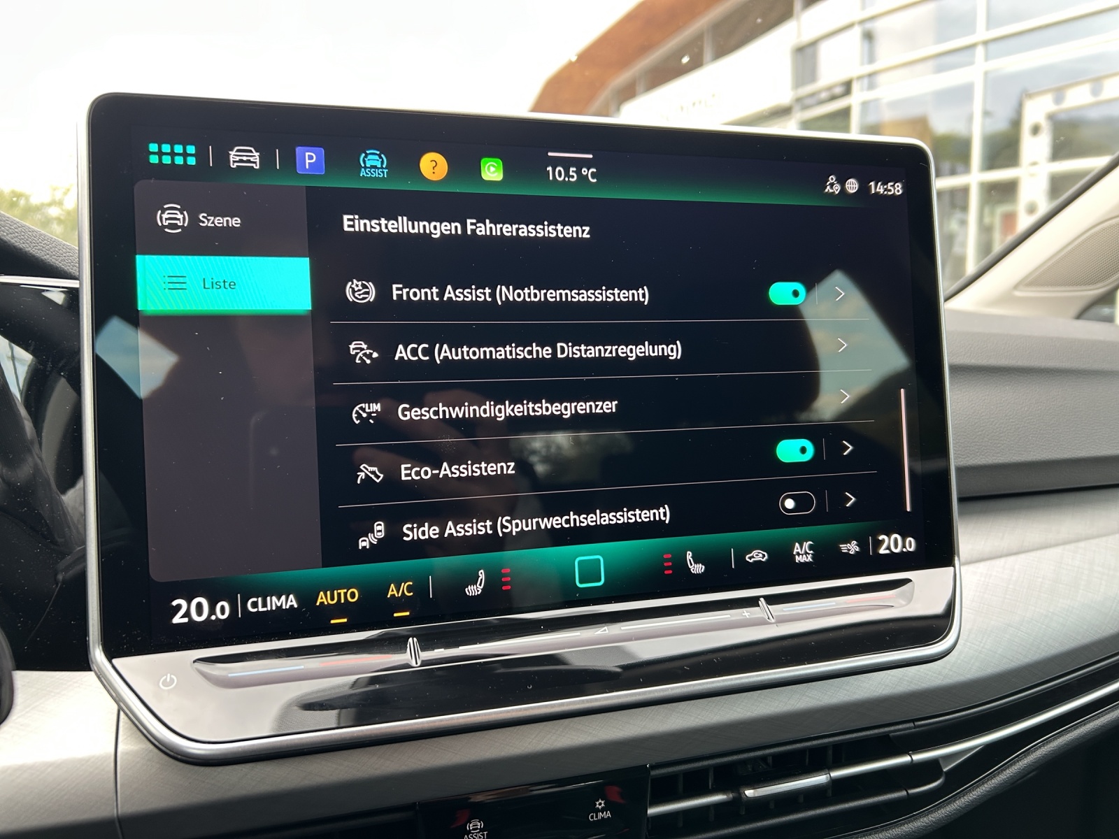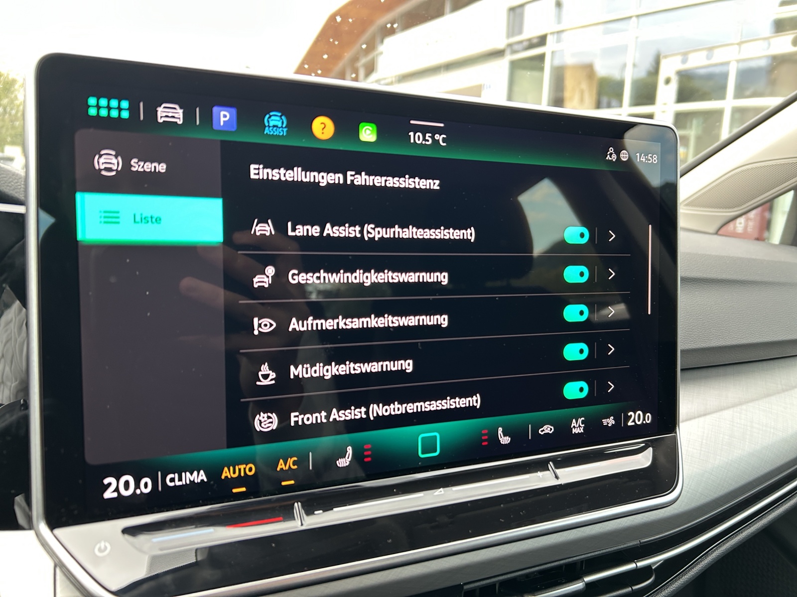 Ausstattung überspringen Abbiegebremsfunktion und Ablagefach und Steckdose 12V vorn Airbag für Fahrer und Beifahrer Ambientebeleuchtung 10-farbig App Connect App-Connect Wireless Außenspiegel elektrisch einstell- und Außenspiegel verstellbar Außenspiegelgehäuse/Türgriffe in Wagenf. Automatische Distanzregelung ACC Beifahrersitzlehne nicht umklappbar Bordwerkzeug und Wagenheber Chrom-Applikationen Dachreling in schwarz Dekoreinlagen "Nature Cross Brushed" Digital Cockpit Pro Digitaler Radioempfang DAB+ Doppelton-Signalhorn Dreipunkt-Automatiksicherheitsgurte Dreipunkt-Automatiksicherheitsgurte vorn Einparkhilfe Elektronische Differenzialsperre XDS Elektronische Parkbremse Elektronisches Stabilisierungsprogramm Fahrersitz verstellbar Fahrlichtschaltung automatisch Fensterheber elektrisch hinten Fensterheber elektrisch vorne Freischaltbare Sonderausstattung: Freisprecheinrichtung Frontscheibe in Verbundsicherheitsglas Fußgängerschutzmaßnahmen Geschwindigkeitsbegrenzer mit Innenspiegel automatisch abblendend ISOFIX-Halteösen Klimaanlage Klimaanlage "Climatronic" Komfortsitze vorn Kopfstützen (3 Stück) hinten LED-Hauptscheinwerfer LED-Leseleuchten vorn (2 Stück) LED-Rückleuchten LED-Rückleuchten LED-Scheinwerfer LED-Scheinwerfer Lendenwirbelstütze vorn Lenkrad beheizbar Lenkrad höhenverstellbar Leuchtweitenregulierung dynamisch Lichtsensor Make-up-Spiegel beleuchtet Media-Schnittstelle Mittelarmlehne vorn Müdigkeits- und Ablenkungserkennung Multifunktionslenkrad in Leder Navigationssystem Navigationssystem "Discover" 12,9" Disp. Notbremsassistent "Front Assist" Notruf-Service Notrufsystem / E-Call Online Dienste Park Distanz Kontrolle hinten Räder, 16" "Norfolk" Radsicherungen Regensensor Reifen 205/55 R 16 Reifenkontrollanzeige Rücksitzbank asym. geteilt umklappbar Schlüsselloses Startsystem Seitenairbags vorn mit Kopfairbag und Servolenkung elektromechanisch Sicherheitsoptimierte Kopfstützen vorn Sitz-Fahrer höhenverstellbar Sitzbezug Stoff Sitzheizung vorne Sitzmittelbahnen in Stoff "Life" Spurhalteassistent Spurhalteassistent "Lane Assist" Start-Stopp-System Steckdose 12V im Gepäckraum Stoßfänger in Wagenfarbe Telefonschnittstelle Textilfußmatten vorne und hinten Tire Mobility Set Türgriffmulden beleuchtet Umfeldbeleuchtung mit Logoprojektion Unlimited-Paket Unlimited-Paket "Preisvorteil" USB-C-Schnittstellen vorn (2 Stück) Verkehrszeichenerkennung Vorbereitet für "Alcolock Interlock" Vorbereitet für VW Connect und Vordersitze mit Höheneinstellung VW Garantie 5 Jahre / 100.000 km Wärmeschutzverglasung grün Warndreieck Warnton und Warnleuchte Wegfahrsperre elektronisch Winterpaket Mehr anzeigen