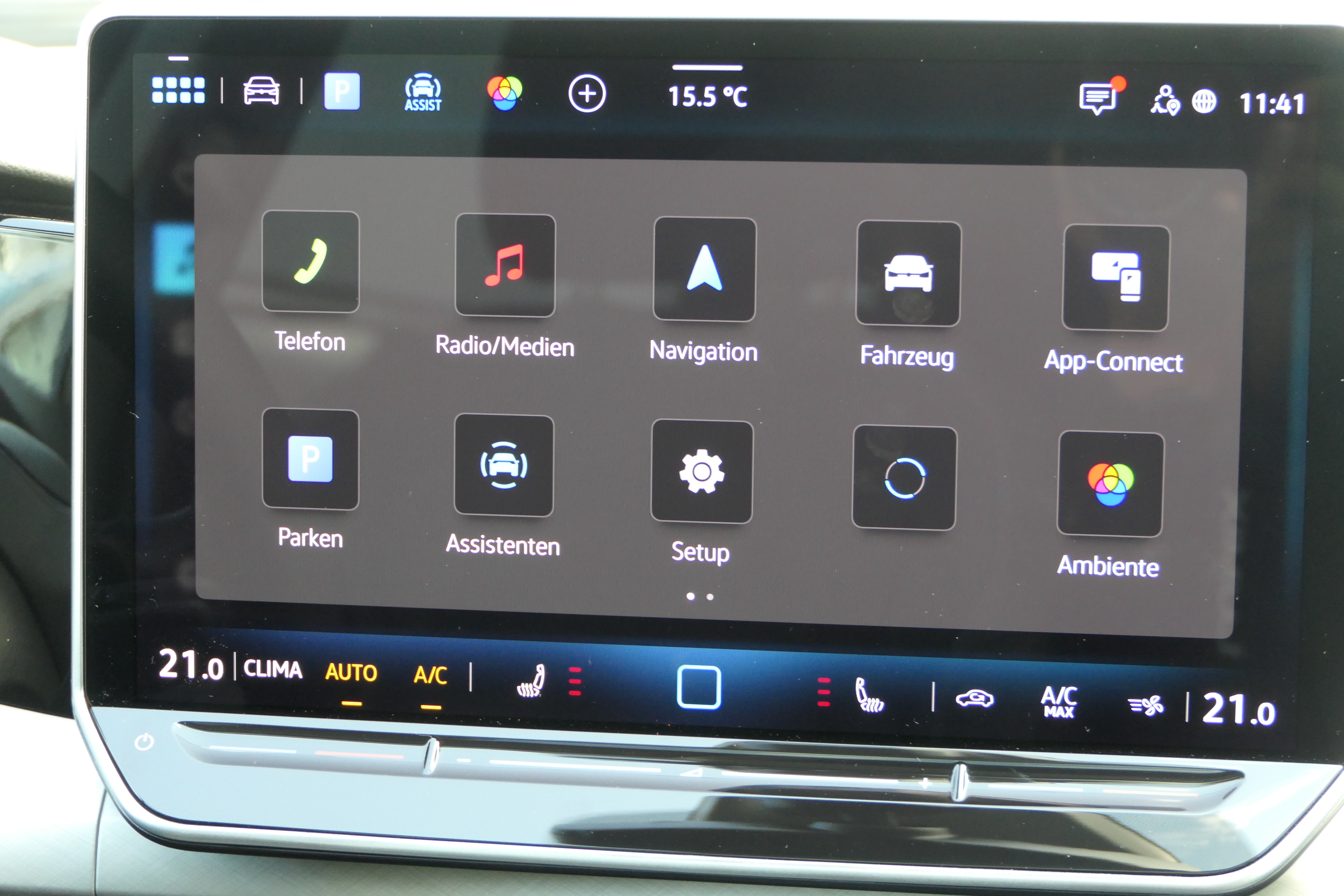 Ausstattung überspringen 360° Kamera Abbiegebremsfkt. und Ausweichunterstütz. Ablagefach und Steckdose 12V vorn Airbag für Fahrer und Beifahrer Ambientebeleuchtung 10-farbig App-Connect Wireless Außenspiegel elektrisch einstell- und Außenspiegelgehäuse/Türgriffe in Wagenf. Automatische Distanzregelung ACC Beifahrersitzlehne nicht umklappbar Bordwerkzeug und Wagenheber Chrom-Applikationen Dachreling in schwarz Dekoreinlagen "Nature Cross Brushed" Digital Cockpit Pro Digitaler Radioempfang DAB+ Doppelton-Signalhorn Dreipunkt-Automatiksicherheitsgurte hi. Dreipunkt-Automatiksicherheitsgurte vorn Easy Open & Close Einparkhilfe Elektronische Differenzialsperre XDS Elektronische Parkbremse Elektronisches Stabilisierungsprogramm Fahrlichtschaltung automatisch Fernentriegelung für Rücksitzlehne Frontscheibe in Verbundsicherheitsglas Fußgängerschutzmaßnahmen Geschwindigkeitsbegrenzer mit Innenspiegel automatisch abblendend ISOFIX-Halteösen Klimaanlage "Climatronic" Komfortsitze vorn Kopfstützen (3 Stück) hinten LED-Leseleuchten vorn (2 Stück) LED-Rückleuchten LED-Scheinwerfer Lendenwirbelstütze vorn Lenkrad beheizbar Leuchtweitenregulierung dynamisch Licht und Sicht Paket inkl. Light Assist Make-up-Spiegel beleuchtet Mittelarmlehne vorn Müdigkeits- und Ablenkungserkennung Navigationssystem Navigationssystem "Discover" 12,9" Disp. Netztrennwand Notbremsassistent "Front Assist" Notruf-Service Online Dienste Parken-und-Komfort-Paket Preisschutz Progressivlenkung Räder, 16" "Zürich" Radsicherungen Rechtshinweis Mobile Online-Dienste VW Reifenkontrollanzeige Reserverad gewichts- und platzsparend Reserverad in Fahrbereifung Rückfahrkamera "Rear View" Rücksitzbank asym. geteilt umklappbar Seitenairbags vorn mit Kopfairbag und Seitenscheiben hinten und Heckscheibe Servolenkung elektromechanisch Sicherheitsoptimierte Kopfstützen vorn Sitzheizung vorne Sitzmittelbahnen in Stoff "Life" Sky Paket Soundsystem Soundsystem "Harman Kardon" Spurhalteassistent "Lane Assist" Start-Stopp-System Steckdose 12-V vorn Steckdose 12V im Gepäckraum Stoßfänger in Wagenfarbe Telefonschnittstelle Textilfußmatten vorne und hinten Tire Mobility Set Trenngitter/Wand Triebwerkunterschutz Türgriffmulden beleuchtet Umfeldbeleuchtung mit Logoprojektion Umgebungsansicht "Area View" Unlimited-Paket Unlimited-Paket "Preisvorteil" USB-C-Schnittstellen vorn (2 Stück) Verkehrszeichenerkennung Vorbereitet für "Alcolock Interlock" Vorbereitet für "VW Connect" und Vordersitze mit Höheneinstellung VW Garantie 5 Jahre / 100.000 km Wärmeschutzverglasung grün Warndreieck Warnton und -leuchte Wegfahrsperre elektronisch Winterpaket Mehr anzeigen