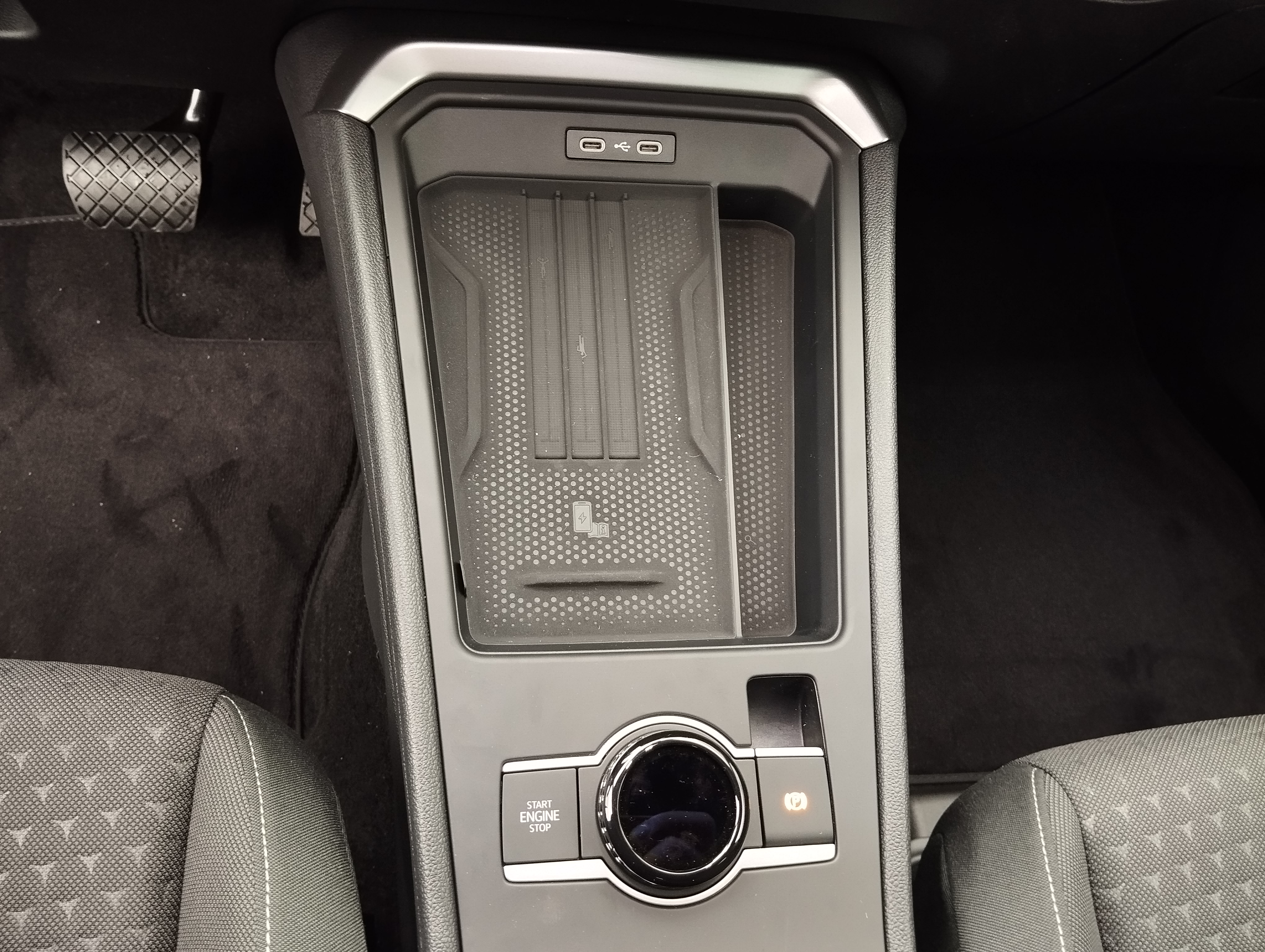 • Ablagefach und 12-V-Steckdose vorn