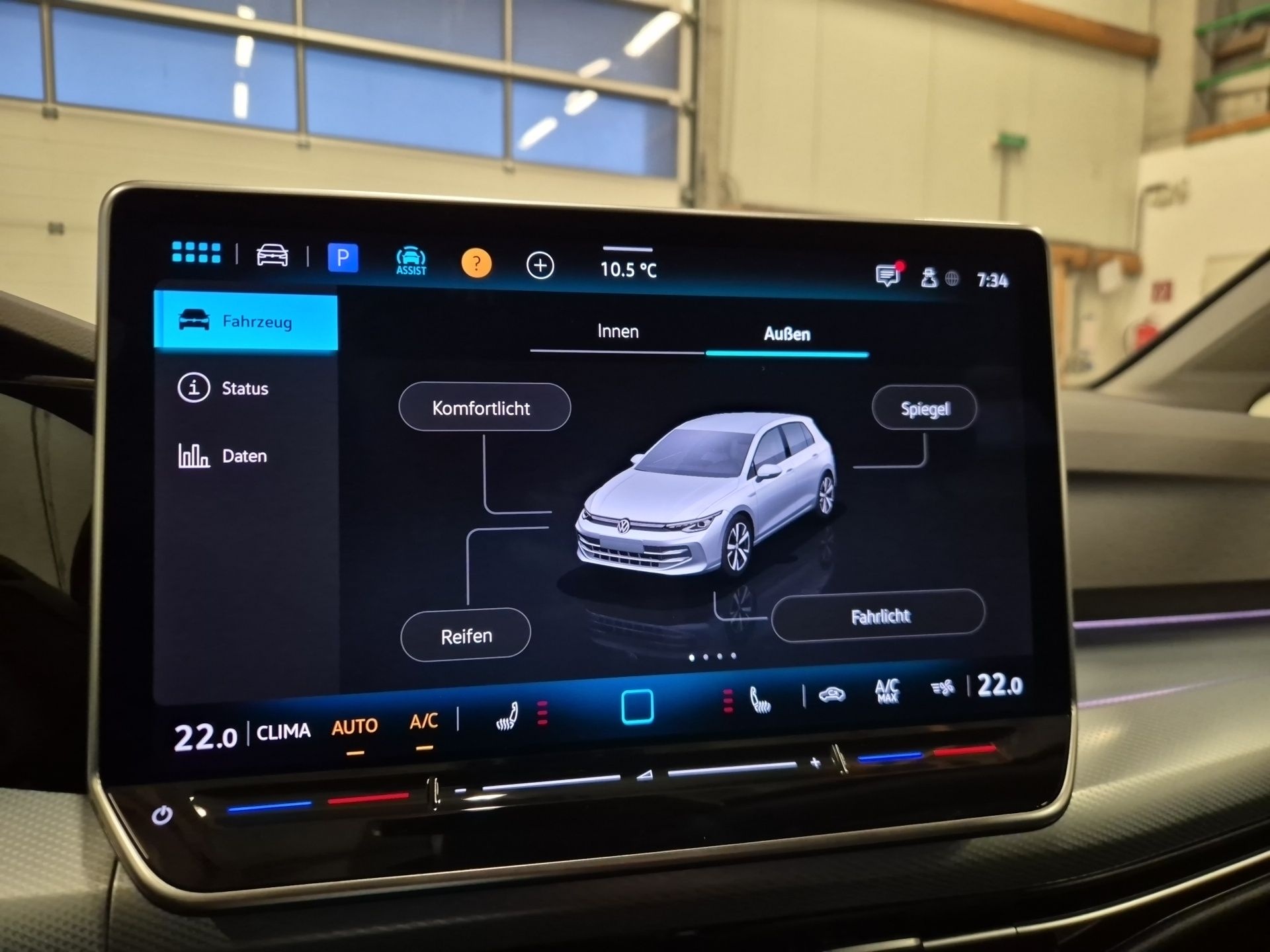 Ausstattung überspringen 12-V-Steckdose im Gepäckraum 2 LED-Leseleuchten vorn und 2 hinten 2 USB-C-Schnittstellen vorn, 2 USB-C-Ladebuchsen an der Mittelkonsolehinten; Ladeleistung bis zu 45 W 4 Leichtmetallräder "Zürich" 7 J x 16 6+1 Lautsprecher Abbiegebremsfunktion und Ausweichunterstützung Ablage- und Staukasten Mittelarmlehne Ablenkungs- und Müdigkeitserkennung ABS Abstandsregelung Airbag für Fahrer und Beifahrer, mit Beifahrerairbag-Deaktivierung Ambientebeleuchtung 30-farbig Anhängevorrichtung Anhängevorrichtung anklappbar, mit elektrischer Entriegelung App Connect App-Connect Wireless für Apple CarPlay und Android Auto Apple CarPlay Außenspiegel beheizbar Außenspiegel elektrisch anklappbar Außenspiegel elektrisch einstell-, anklapp-, beheizbar, mit Memory-Funktionund Beifahrerspiegelabsenkung Außenspiegel elektrisch verstellbar Außenspiegel Fahrerseite asphärisch, Beifahrerseite konvex Außenspiegel verstellbar Außenspiegelgehäuse in Schwarz Automatische Distanzregelung Automatische Distanzregelung ACC Autoradio mit Bluetooth Berganfahrhilfe Bluetooth Bordcomputer Bremsassistent Dachhimmel Digital Cockpit Pro, mehrfarbig, verschiedene Info-Profile wählbar Digitaler Radioempfang DAB+ Diversity-Antenne für FM-Empfang Dreipunkt-Automatiksicherheitsgurte für die äußeren Rücksitzplätze Dreipunkt-Automatiksicherheitsgurte vornmit Höheneinstellung und Gurtstraffer Einparkhilfe - Warnsignale bei Hindernissen im Front- und Heckbereich Elektronische Begrenzung der Höchstgeschwindigkeit Elektronische Differenzialsperre XDS Elektronische Parkbremse inkl. Auto-Hold-Funktion Elektronische Sprachverstärkung Entriegelung Heckklappe/Deckel hinten von außen ESP Fahrassistent "Travel Assist" und Spurhalteassistent "Lane Assist" Fahrer- und Beifahrerairbag Fahrlichtschaltung automatisch, mit LED-Tagfahrlicht sowie Begrüßungs- und Verabschiedungslicht Fahrzeuge mit besonderen Produktaufwer- tungsmaßnahmen Fernlichtassistent "Light Assist" Geschwindigkeitsbegrenzer mit vorausschauender Regelung Induktive Ladeschale für Smartphones Infotainment-Paket "Ready 2 Discover" Infotainment-System mit 32,7-cm-Display (12,9 Zoll) Innenspiegel automatisch abblendend ISOFIX-Halteösen für Kindersitze auf denäußeren Rücksitzen sowie auf dem Beifahrersitz, i-Size-kompatibel Klimaanlage "Air Care Climatronic" mit Aktiv-Kombifilter, Bedienelementen hinten und 3-Zonen-Temperaturregelung Kombi-Instrument mit elektronischem Tachometer, Kilometer- und Tageskilometerzähler, Drehzahlmesser Komfortsitze vorn Kopfairbags vorn und hinten, Seitenairbags vorn, Center-Airbag Ladeboden variabel LED-Leuchte im Fußraum vorn, Lichtfarbe wählbar LED-Rückleuchten LED-Scheinwerfer LED-Scheinwerfer mit Tagfahrlicht LED-Tagfahrlicht Leichtmetallfelgen 16 Zoll Lendenwirbelstützen vorn Lenkrad beheizbar Leuchtweitenregulierung dynamisch Make-up-Spiegel beleuchtet in den Sonnenblenden Mittelarmlehne vorn höhen- und längseinstellbar Müdigkeitserkennung Multifunktionsanzeige Multifunktionskamera Multifunktionslenkrad Multifunktionslenkrad in Leder, beheizbar Navigationssystem Notbremsassistent Notbremsassistent "Front Assist" mit Fußgänger- und Radfahrererkennung Notruf-Service, Laufzeit 10 Jahre ab Erstauslieferung, Voraussetzung: Verfügbarkeit benötigter Mobilfunknetze Online-Dienst, mit OCU, mit Head Unit Codierung, ohne WFS-Verbund Park Distanz Kontrolle vorne und hinten Pedale in Edelstahl gebürstet Proaktives Insassenschutzsystem Radsicherungen mit erweitertem Diebstahlschutz Regensensor Regensensor Reifendruckkontrolle Reifenkontrollanzeige Schalthebelknauf in Leder Scheiben getönt Schlüsselloses Startsystem "Keyless Start" ohne Safe-Sicherung Seitenfenster ab B-Säule abgedunkelt Seitenscheiben hinten und Heckscheibe abgedunkelt Serviceanzeige 30000 km oder 2 Jahre ( flexibel ) Serviceheft gepflegt Servolenkung elektromechanisch, geschwindigkeitsabhängig geregelt Sitzbezug Stoff Sitzheizung vorne Spurwechselassistent "Side Assist", Ausparkassistent und Ausstiegswarnung Start-Stopp-System Start-Stopp-System mit Bremsenergie-Rückgewinnung Startknopf Tagfahrlicht Telefonschnittstelle mit induktiver Ladefunktion Tempomat Textilfußmatten vorn und hinten Touchscreen Türgriffmulden beleuchtet Umfeldbeleuchtung mit Lichtprojektion USB Schnittstelle Verbandtasche, Warndreieck und Warnweste Verkehrszeichenerkennung Virtual Cockpit Vorbereitet für "VW Connect" und "VW Connect Plus" Vorbereitet für spätere Freischaltung: Navigationssystem Vordersitze beheizbar Vordersitze mit Höheneinstellung Warnton und -leuchte für nicht angelegteGurte vorn und hinten Wegfahrsperre elektronisch Mehr anzeigen
